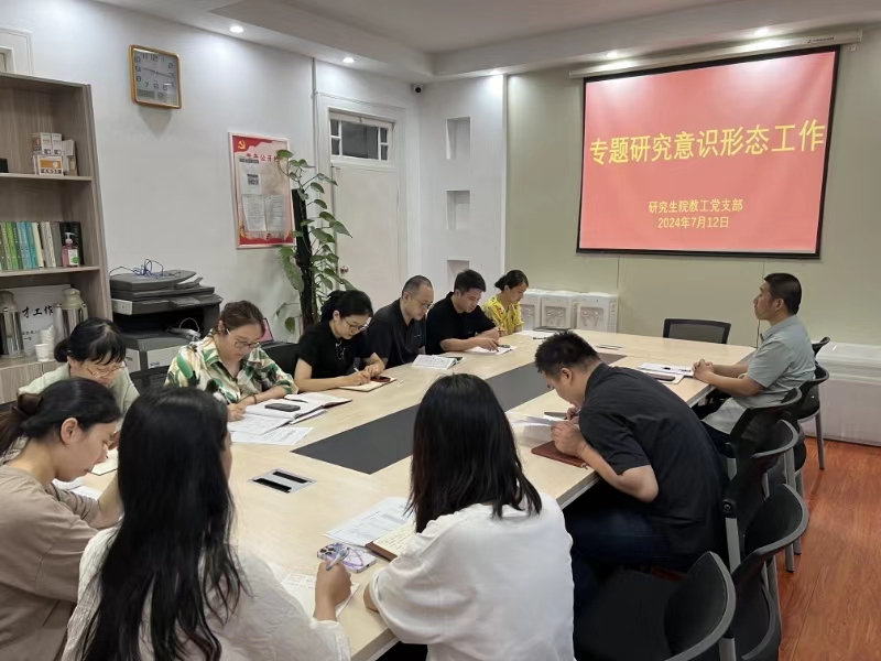 本网讯 为深入学习贯彻习近平总书记关于意识形态工作的重要论述精神,推动意识形态工作走深走实,7月12日上午,研究生院教工党支部召开意识形态工作专题会议,支部书记姜家生主持会议,支部全体党员参加会议。