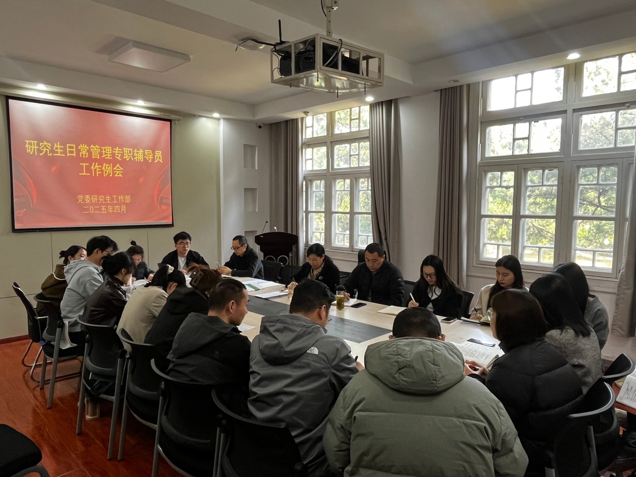 本网讯 4月3日下午,党委研究生工作部在勤政楼216会议室召开研究生辅导员工作例会,各学院研究生专职辅导员参加会议,会议由党委研究生工作部部长唐红萍主持。