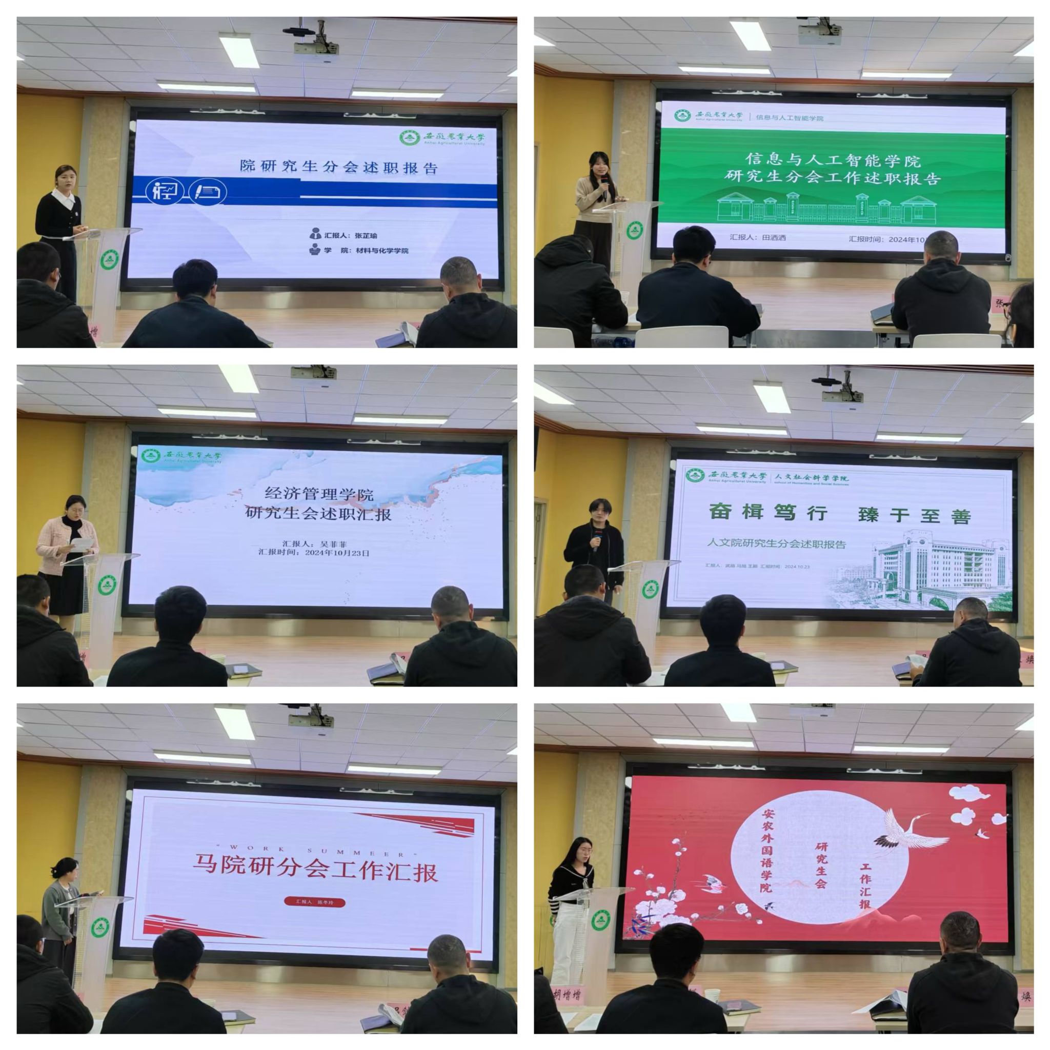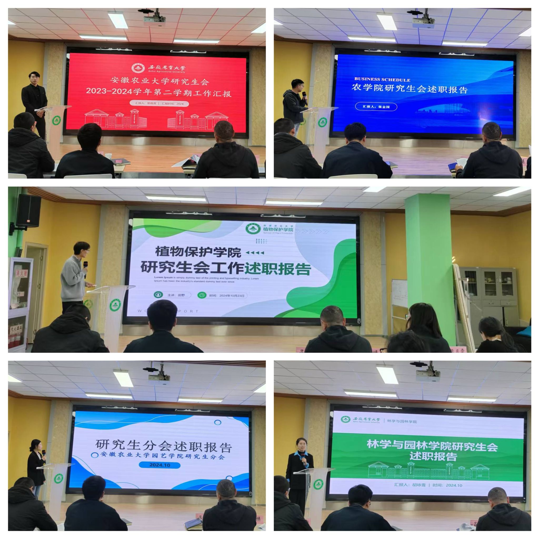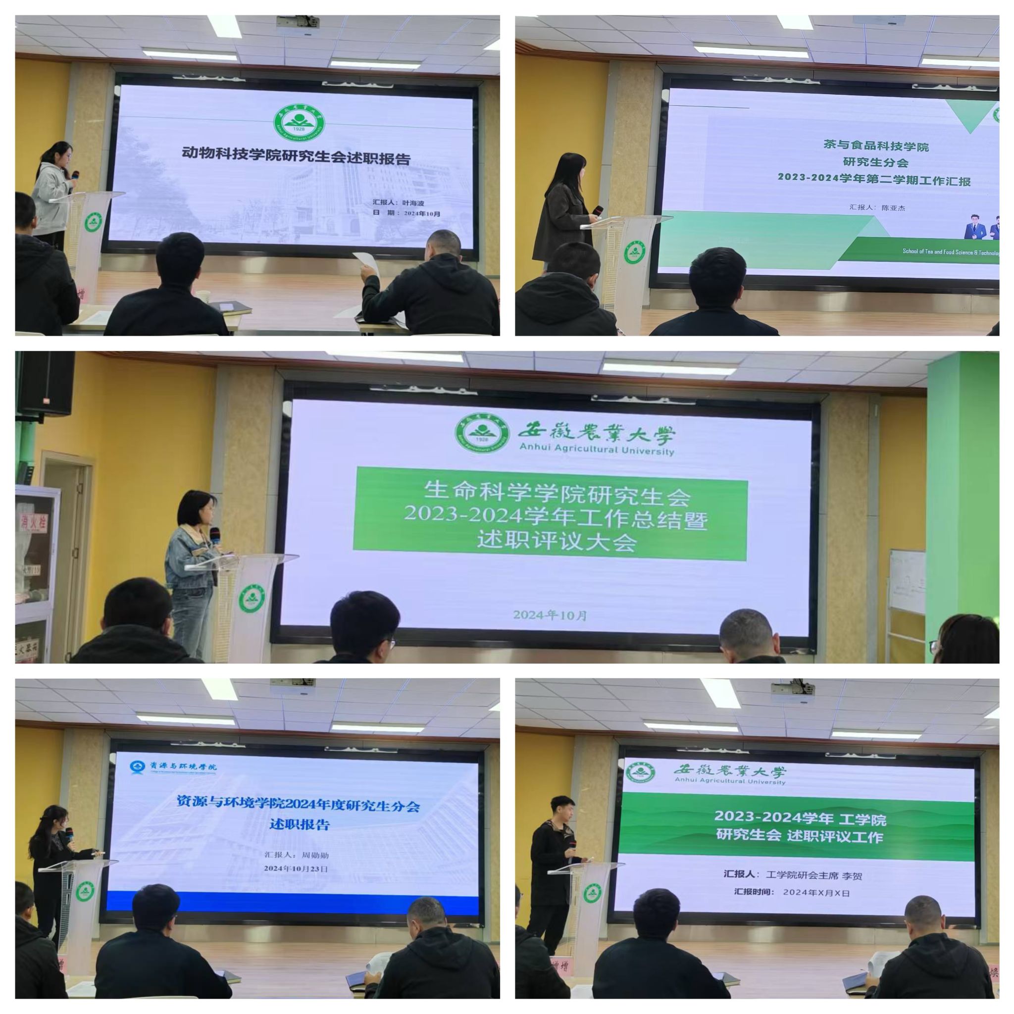 校研究生会及15个院研究生分会结合实际情况,围绕组织建设、工作机制、媒体宣传、工作成效等方面,分别阐述上一学期工作开展情况及存在的问题。参会评审人员对各研究生分会的述职情况进行评议并确定林学与园林学院、资源与环境学院、信息与人工智能学院、经济管理学院、人文社会科学学院5个学院的研究生分会为优秀研究生分会。