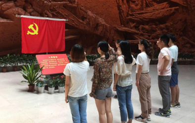 在活动最后,党员同志们在鲜红的党旗面前,庄严的重温了入党誓词。
