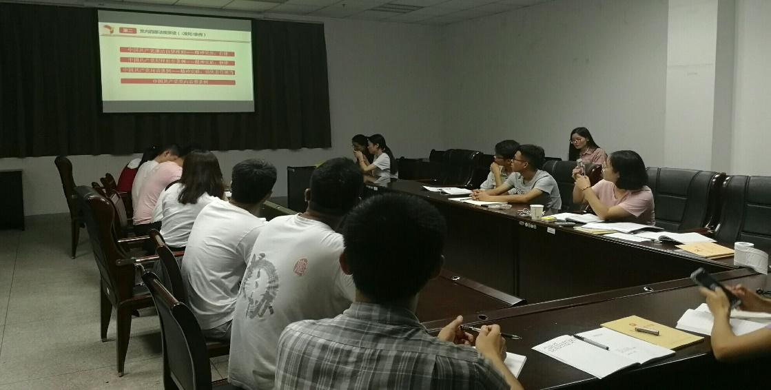 首先,党支部书记根据学院要求对暑期党支部骨干培训班的学习情况进行了介绍,并讲解了习近平新时代中国特色社会主义思想、党内四部法规解读(1准则3条例)、全面从严治党三部分内容。