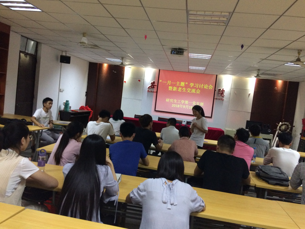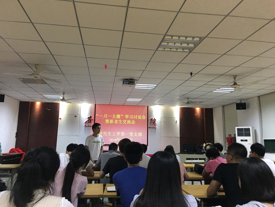 为了进一步提高研究生党员党性修养,加强党组织建设,严肃党纪,促进17、18级研究生工学班党员之间的交流,2018年9月19日,研究生工学第一党支部在三教202召开了“一月一主题”学习讨论会暨新老生交流会,组织学习新修订的《中国共产党纪律处分条例》,本次会议由支部书记戴鹏程主持,支部全体党员参加了会议。
