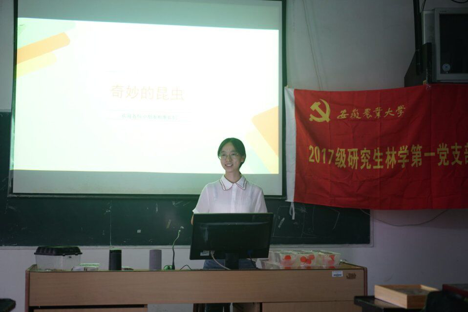 2018年7月1日下午,为庆祝中国共产党建党97周年,研究生院17级林学第1党支部举办了以“科普自然科学知识,创建支部特色活动”为主题的庆祝活动。此次活动主要是让小学生们通过课堂授课以及户外探索的形式了解昆虫,从而做到亲近自然,用自己的力量去保护自然。