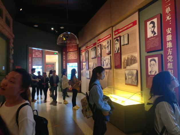 活动包含参观安徽革命烈士事迹陈列馆、向党旗宣誓、在蜀山脚下进行集中学习等。进入陈列馆后大家都被馆中庄严肃穆的气氛所感染而变得安静起来,陈列室内烈士们生前使用过的武器以及战争场面的还原雕塑等无不让大家身临其境,感受战火年代先烈们的英勇骁战。参观结束后,面对鲜红的党旗,大家重温入党誓词,对着党旗进行庄严宣誓,沉甸甸的誓词使全体成员牢记党对自己的要求,增强党性观念,提高政治责任感、使命感。