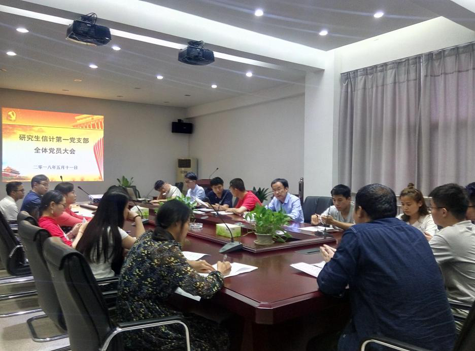 2018年5月11日,根据学校党委和研究生学院党委换届选举工作的要求,研究生信计第一党支部在经技楼507会议室召开换届选举大会,大会邀请学院刘飞老师对支部建设和换届选举工作进行指导,根据学院指导,17级和16级研究生信计党支部合并成立研究生信计第一党支部,本次大会选举产生新立支部的领导班子,换届选举大会由叶生波同志主持。