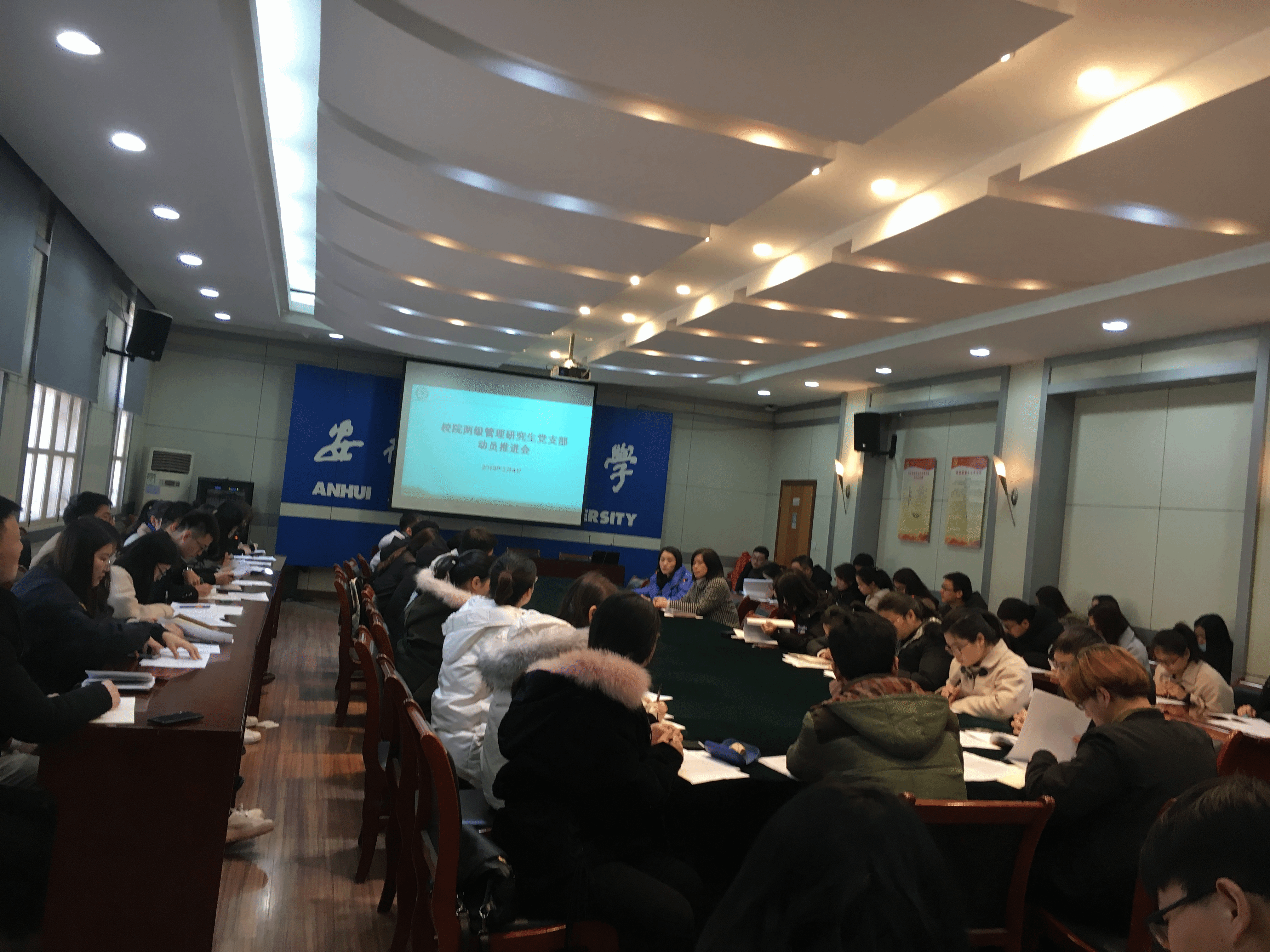 2019年3月4日,党委研究生工作部在校第二会议室召开校院两级管理研究生党支部动员推进会,副部长宋燕平,教育管理办公室主任以及全体研究生党支部书记、副书记参加了会议。