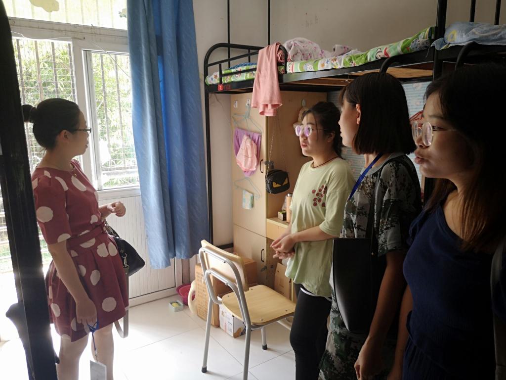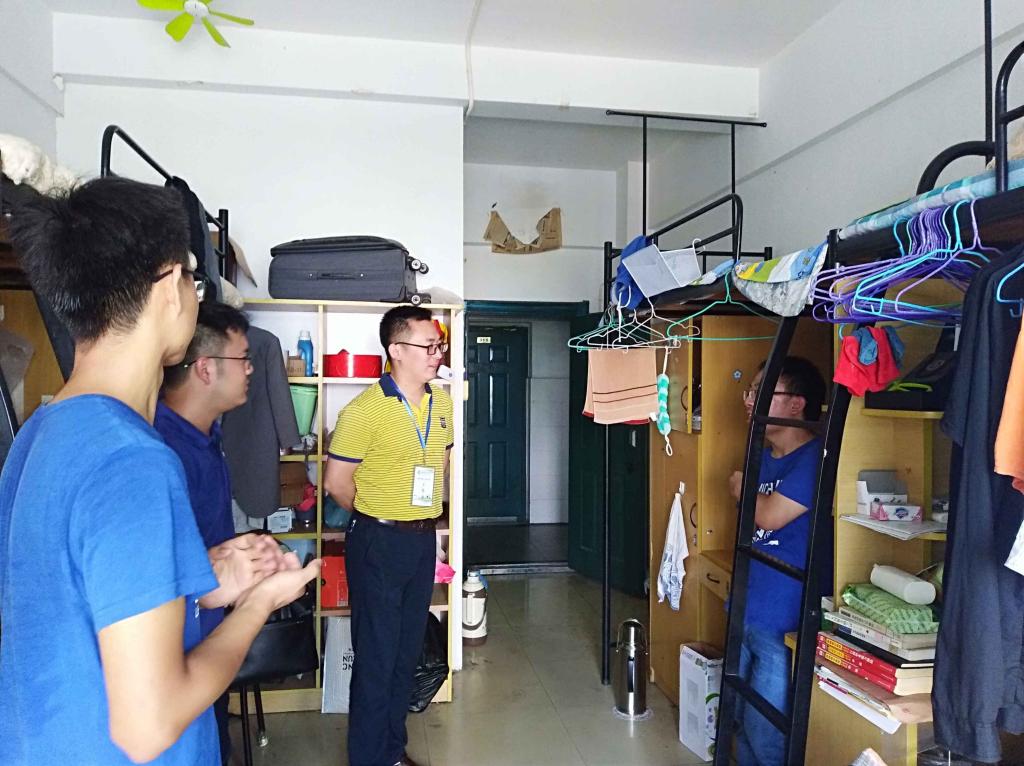 9月12日中午,研工部组织领导、老师和学院辅导员分三组前往校内和大学生公寓宿舍看望2019级研究生。研究生院副院长姜家生带队走访。