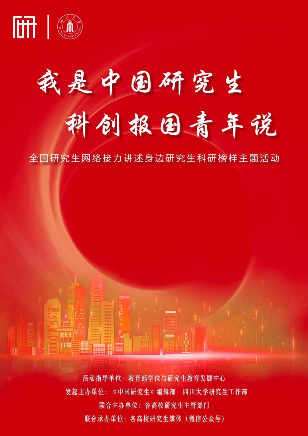 为深入学习贯彻党的二十大精神,开展好学习贯彻习近平新时代中国特色社会主义思想主题教育,全国百所高校研究生积极响应,共同开展“‘我是中国研究生,科创报国青年说’——全国研究生网络接力讲述身边研究生榜样主题活动”。