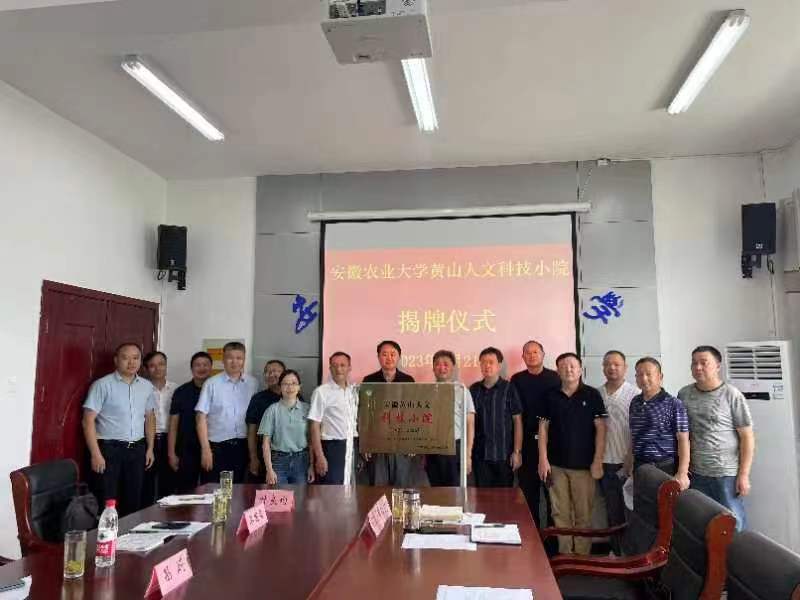 本网讯 为深入学习贯彻习近平总书记给中国农业大学科技小院同学们回信精神,办出农大人文社科特色,扎根江淮打大地,创新“试验站+科技小院”人才培养模式,培养文科类强农先锋、社会英才。7月21日,安徽农业大学“黄山人文科技小院”揭牌仪式在黄山区安徽农业大学皖南实验站举行。黄山区政府党组成员、副区长吴亮、安徽农业大学皖南综合试验站站长胡绍德、黄山区经信、文旅体、教育、农水、司法、民政、农业示范区等相关负责同志、安徽农业大学社会合作处副处长王华斌、研究生院质监办主任昌蔚、人文社会科学学院党委书记陈先玉、院长黄洪雷、副院长滕瀚、单国雷、科技小院首席专家叶良均副教授、以及系部主任等相关人员出席揭牌仪式。