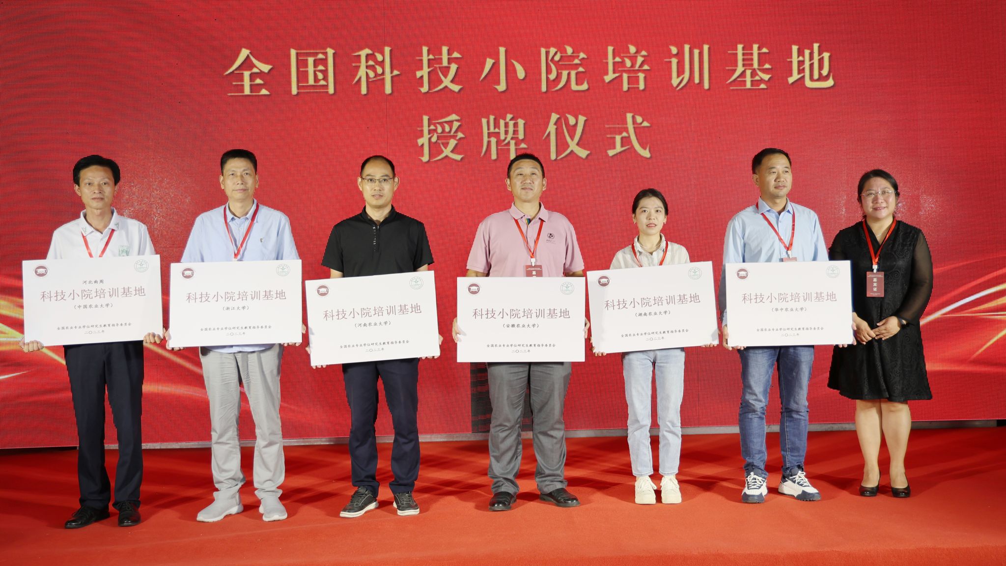 本网讯 2023年全国科技小院培训基地授牌仪式在科技小院发源地河北省曲周实验站举行。全国农业专业学位研究生教指委秘书长郭鑫为10个培训基地授牌。党委研工部副部长(主持工作)姜家生代表学校领取授牌。