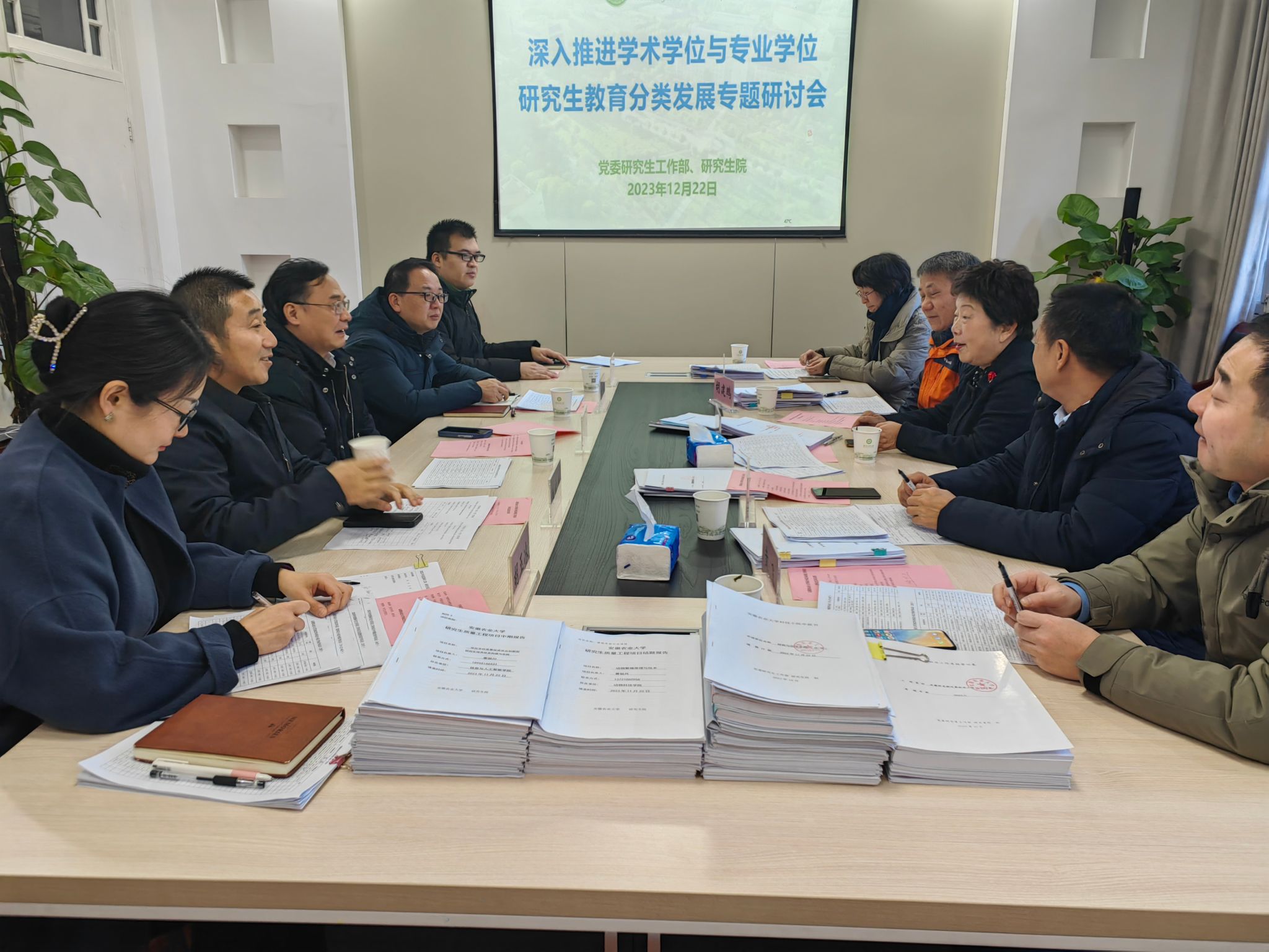 12月22日上午,我校召开深入推进学术学位与专业学位研究生教育分类发展专题研讨会。中国学位与研究生教育学会副会长、中国科学技术大学原副校长张淑林及部分兄弟院校研究生院负责人应邀参加研讨。校党委常委、副校长操海群,党委研究生工作部、研究生院负责人和相关科室负责人参加了会议。