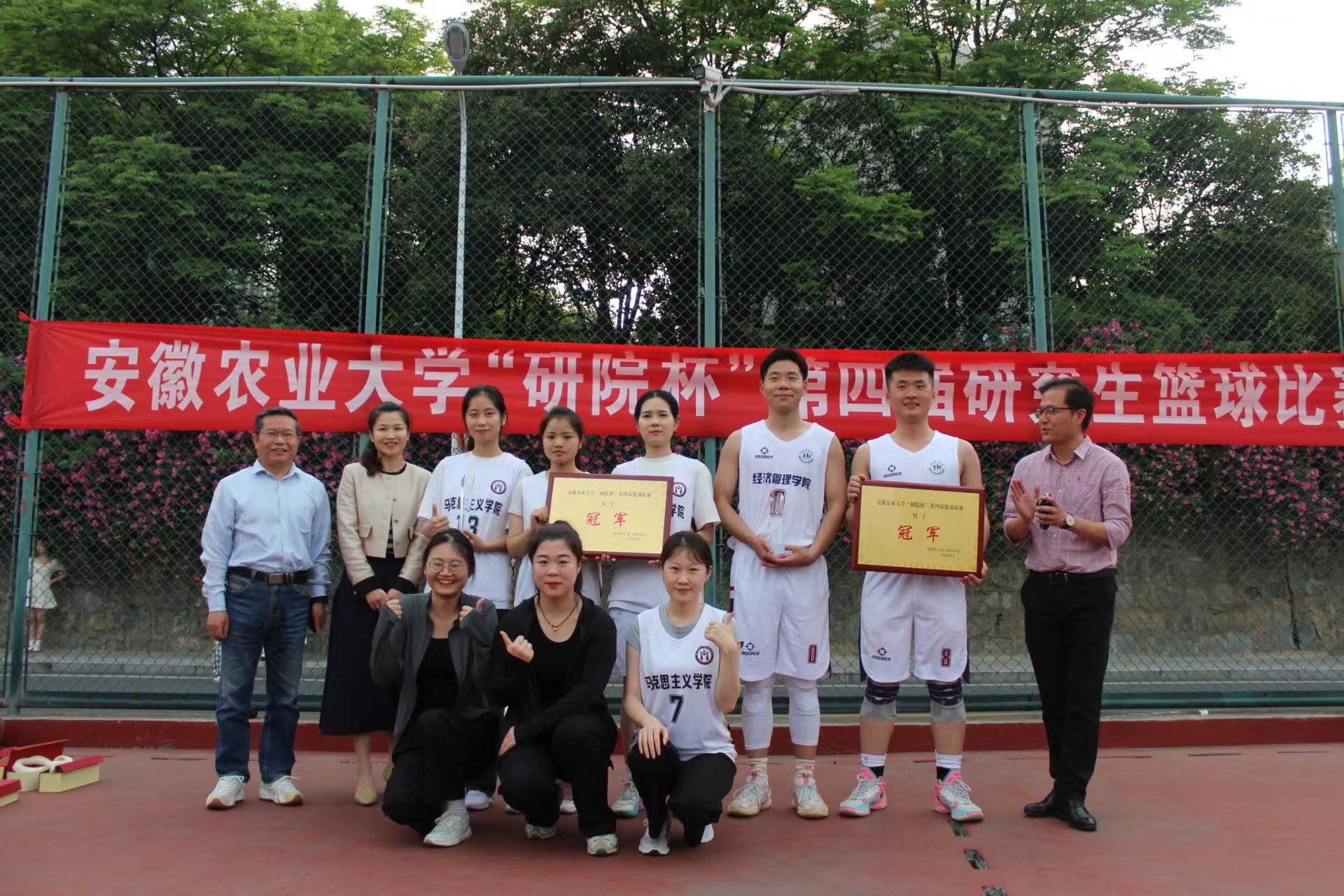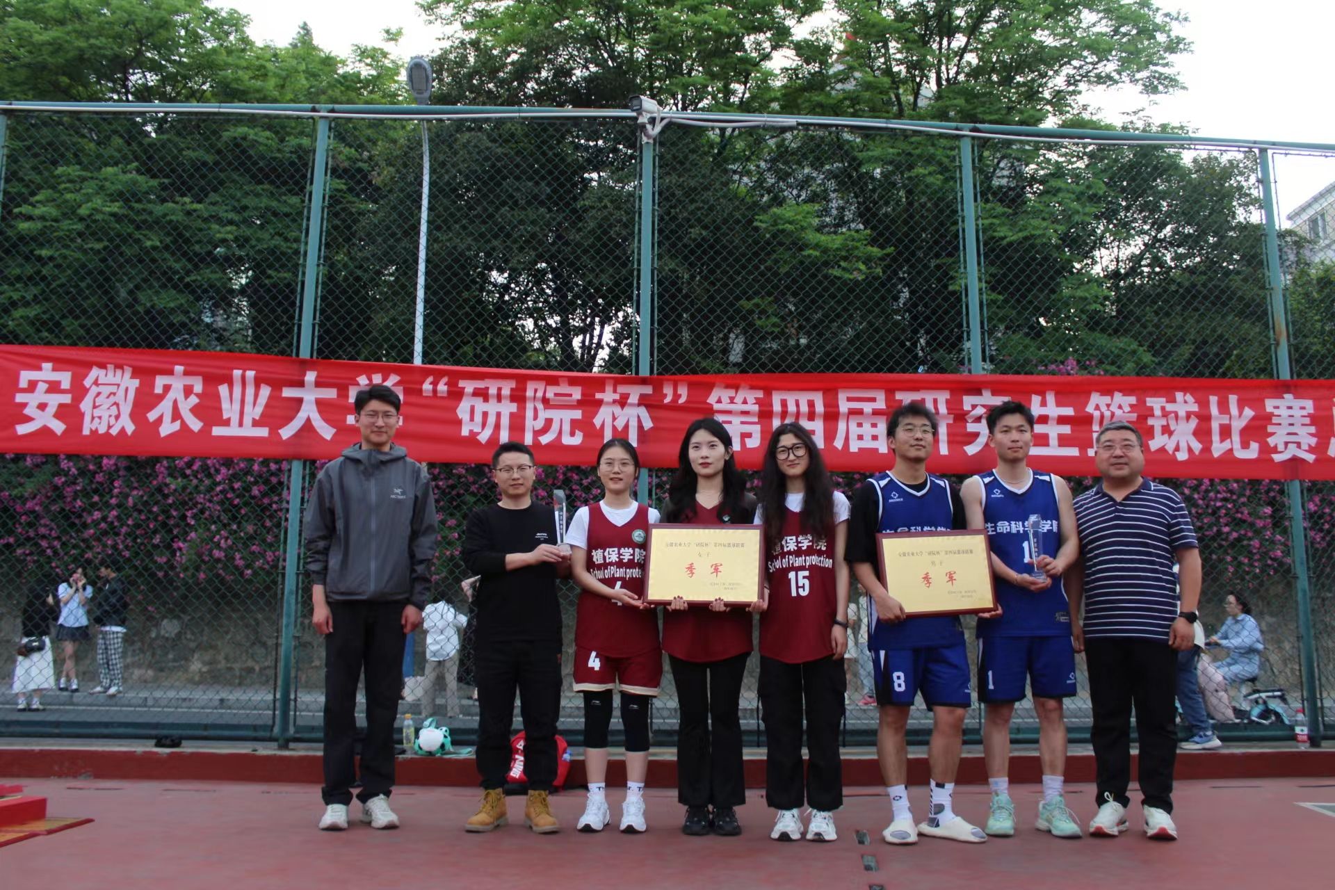 在男篮的激烈对决中,经济管理学院以其出色的战术布局和球员的个人能力,最终脱颖而出,夺得了冠军宝座;林学与园林学院则凭借坚韧的防守和快速反击,赢得了亚军的荣誉;生命科学学院以稳定的发挥赢得了季军位置。在女篮的战场上,马克思主义学院凭借其默契的团队配合和精准的投篮技术,成功战胜了对手,荣获冠军;材料与化学学院的女将们也不甘示弱,凭借顽强的斗志和出色的表现,获得了亚军;植物保护学院的女篮队伍同样展现了不俗的实力,荣获季军称号。