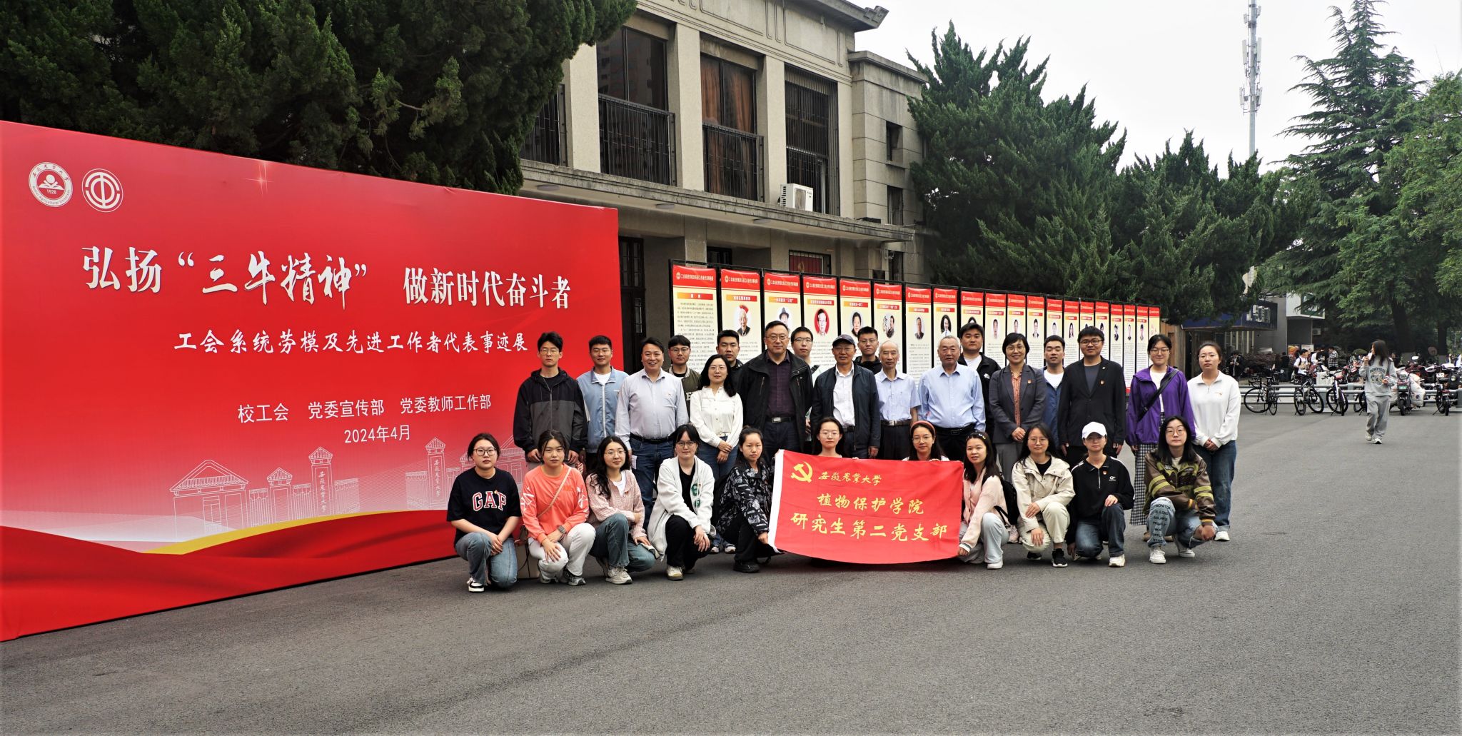 本网讯 在“五一”劳动节即将来临之际,4月28日上午,学院研究生第二党支部组织师生党员赴学校大礼堂门口集中参观“弘扬‘三牛’精神 做新时代奋斗者”工会系统劳模及先进工作者代表事迹展,开展学习劳模精神主题党日。