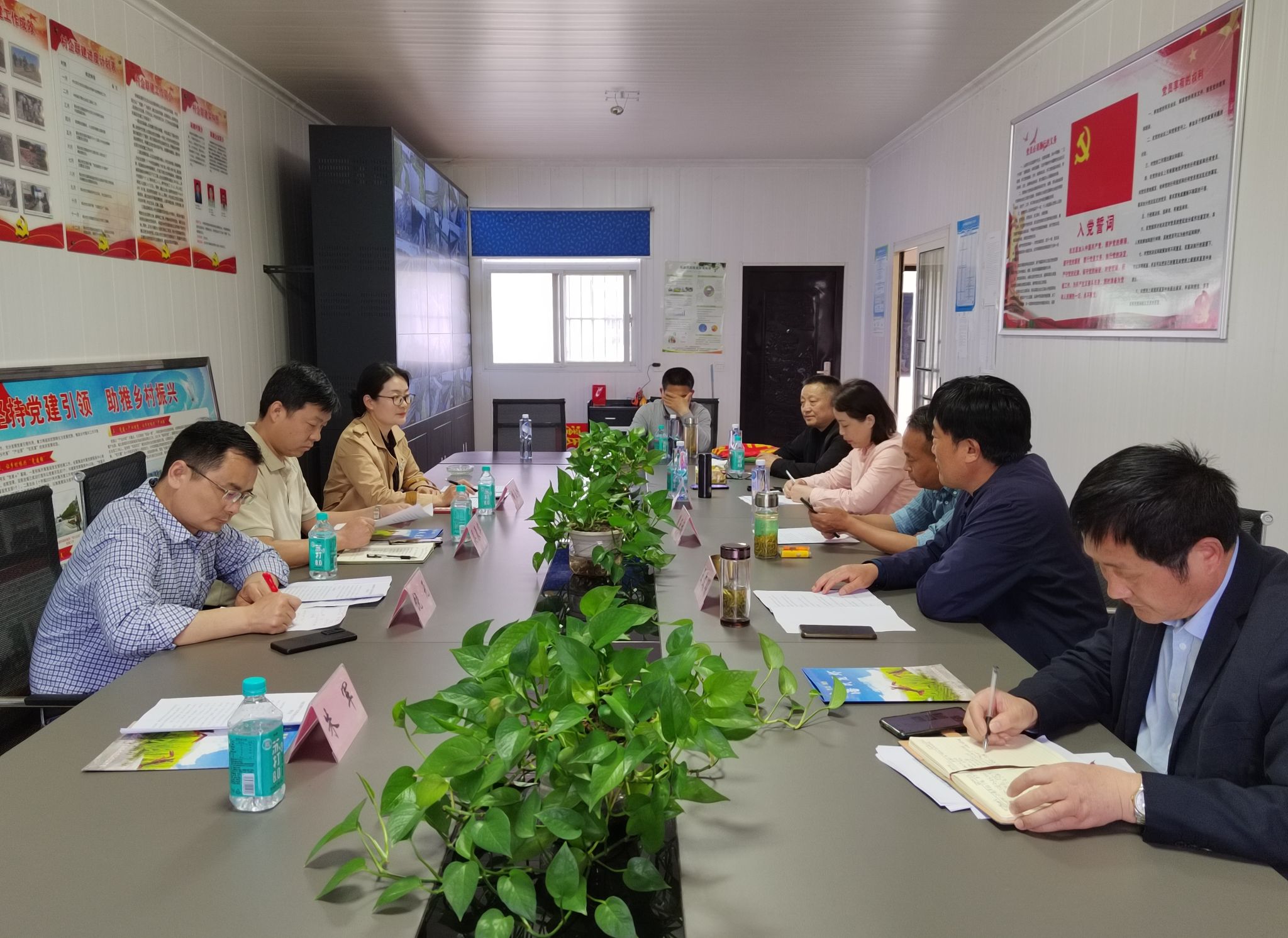 王文明对安徽农业大学一行表示欢迎,对“安徽全椒数字稻虾科技小院”的成立表示祝贺,希望科技小院与全椒县的稻虾产业进行深度融合,利用智慧农业技术为全椒县稻虾产业提供数字技术支撑。胡玉冰介绍了科技小院的建设背景和我校科技小院的建设情况。吴辰华对全椒县农业农村局长期支持学院的科技活动表示感谢,并对全椒数字稻虾科技小院的科技服务和人才培养提出要求,希望科技小院专家团队通过专业的数字稻虾技术服务,为潘氏公司的稻渔综合种养万亩示范区提供高质量技术保障,实现数字稻虾技术的大面积示范推广和人才培养的双丰收。饶元介绍了学院基本情况、近年来在全椒县开展的科技服务和科研合作情况。