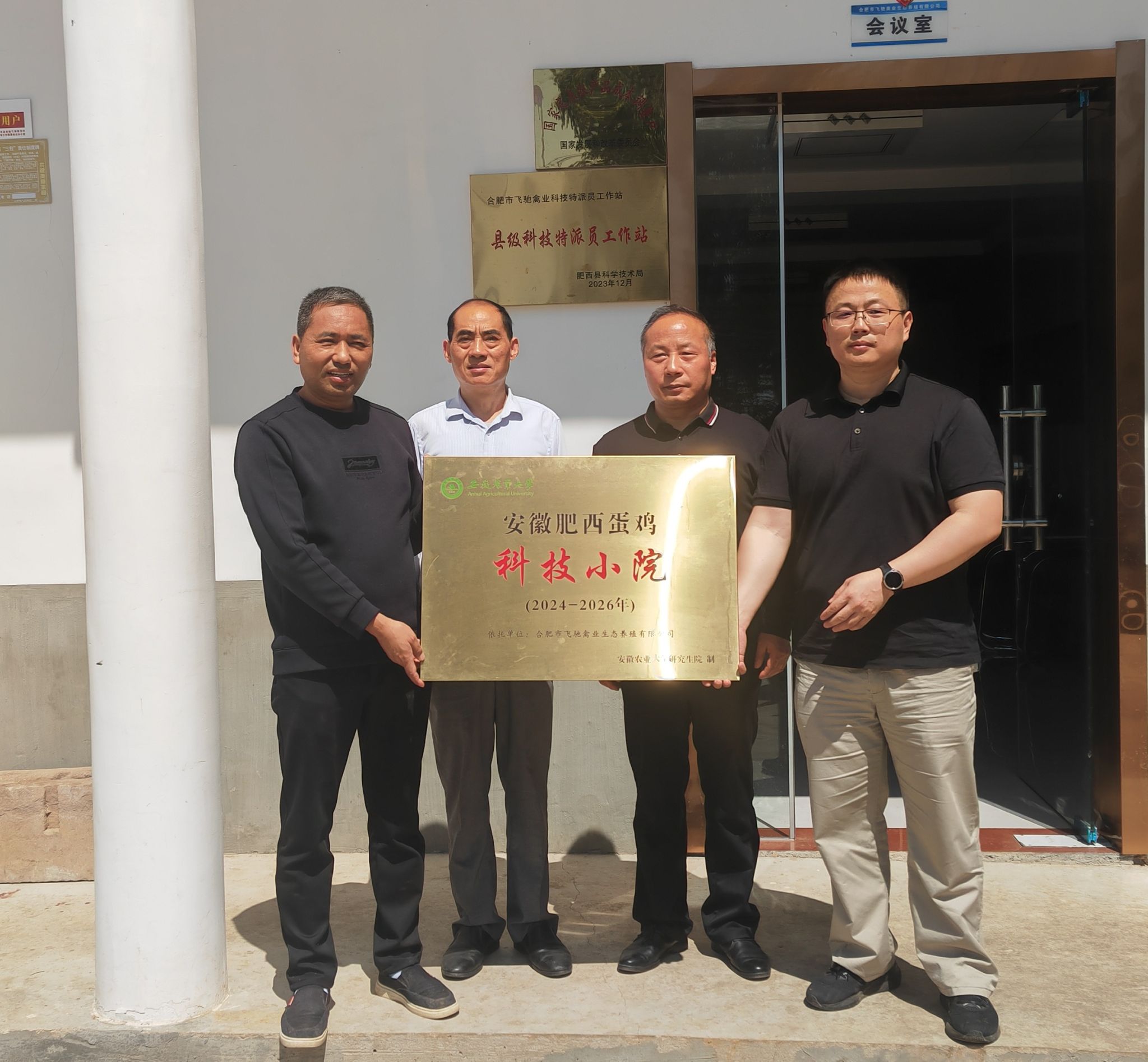 5月14日,为深入学习领会习近平总书记给中国农业大学科技小院学生重要回信精神一周年,推动肥西县域科技小院的高质量发展,在县科技局、县农业农村局、山南镇领导的关心支持下,肥西县畜禽产业科技特派团邀请安徽农业大学、省农科院专家抵达肥西县山南镇的两家蛋鸡企业,开展“安徽肥西蛋鸡科技小院”挂牌活动,以及县科技特派员专项项目申报指导交流。