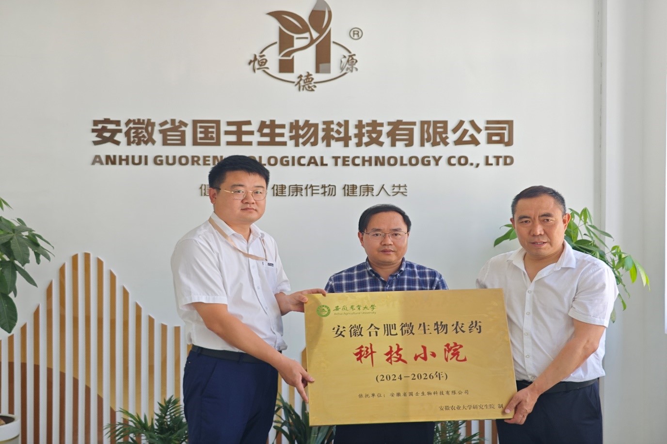 2024年6月3日,安徽合肥微生物农药科技小院在肥西县国壬生物科技有限公司挂牌成立。生命科学学院副院长张应烙、国壬生物科技有限公司负责人官春强、人民万福产业园主任包珂参加了挂牌仪式,双方还就深化校企合作、拓展就业岗位进行深度交流。