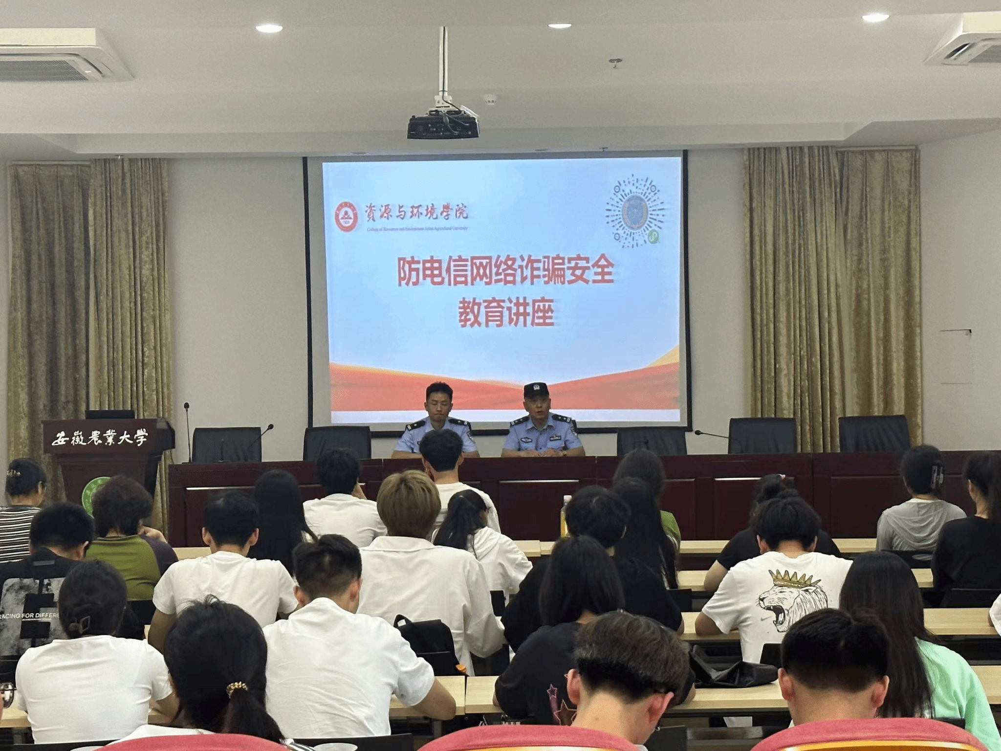 本网讯 6月12日下午,资源与环境学院在中西部综合楼南楼久易报告厅开展大学生防范电信网络诈骗专题讲座,由琥珀街道派出所孙建民警官主讲,学院教师、研究生及本科生代表参加活动。