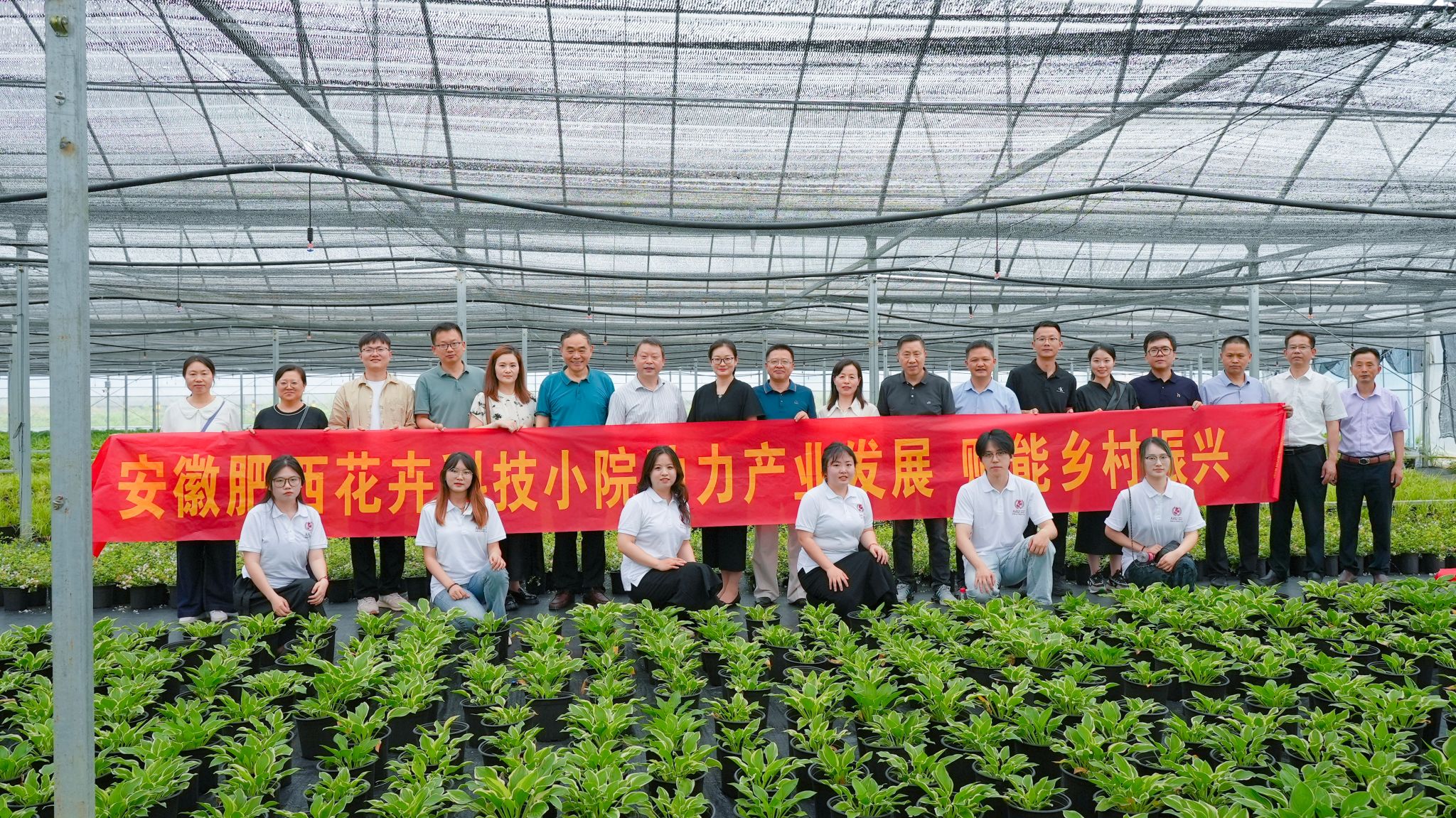 安徽肥西花卉科技小院由合肥苗木花卉交易服务中心、肥西县科学技术协会、合肥市农村专业技术协会联合会、安徽农业大学、安徽省林业科学院、肥西县花木协会共建。小院立足地方特色产业基础和高质量发展急需,聚焦花卉全产业链中存在的技术难点问题,围绕品种选育、高效栽培、水肥一体化和生态防控等新技术进行科研攻关。同时,将“花卉科技小院”作为连接花农、企业和科研院所的桥梁和纽带,发展新质生产力,赋能花卉产业高质量发展。