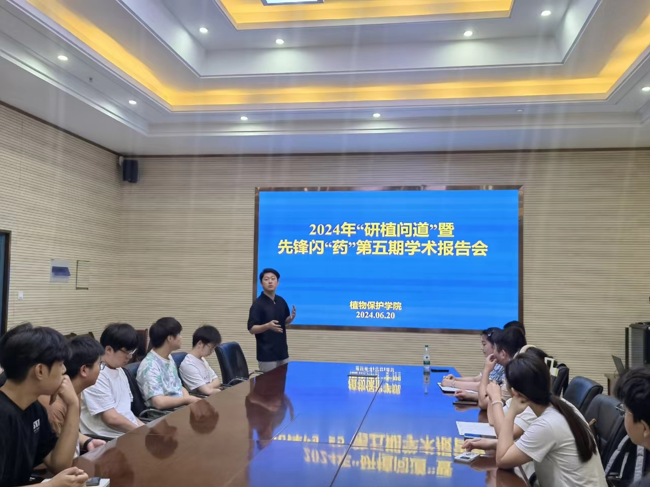 本网讯 为进一步加强学术交流,提高研究生的科学素养与研究能力,6月20日上午,植物保护学院在中西部大楼1213会议室举办2024年第一期“研植问道”研究生学术论坛。学院农药学系部分教师和研究生参加论坛。论坛由农药学系副主任罗健主持。