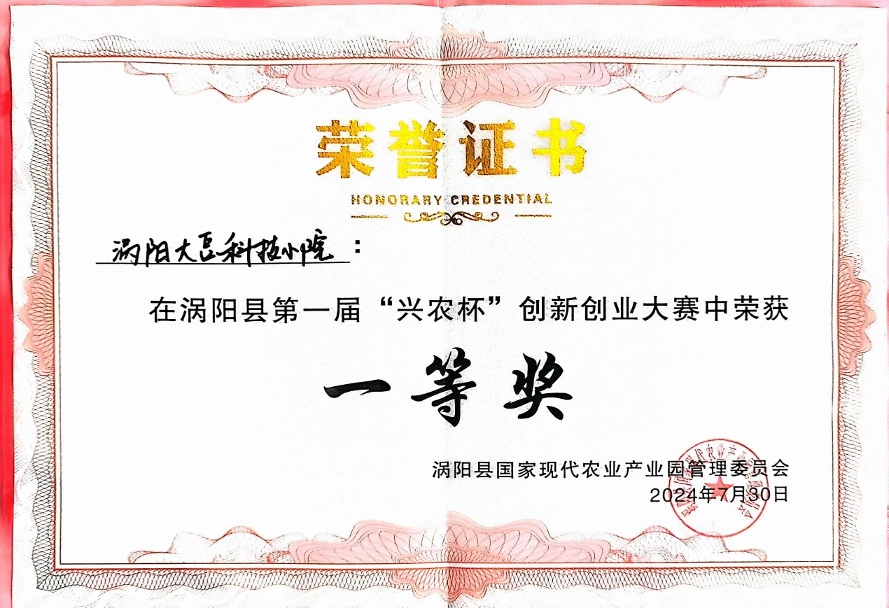本次比赛以“农创道源,筑梦乡村”为主题,重点围绕农业重点发展领域新业态进行设计,由参赛选手提交创新创业(商业)计划书,经评审专家会审初筛后共计15个项目进入决赛,通过“6+6+1”现场路演答辩,最终评选出一等奖一名,二等奖两名,三等奖三名。我校农学院与亳州市农科院共建的涡阳大豆科技小院报送的“豆惠民生——大豆高产高蛋白复配液的首创者”荣获此次大赛一等奖。