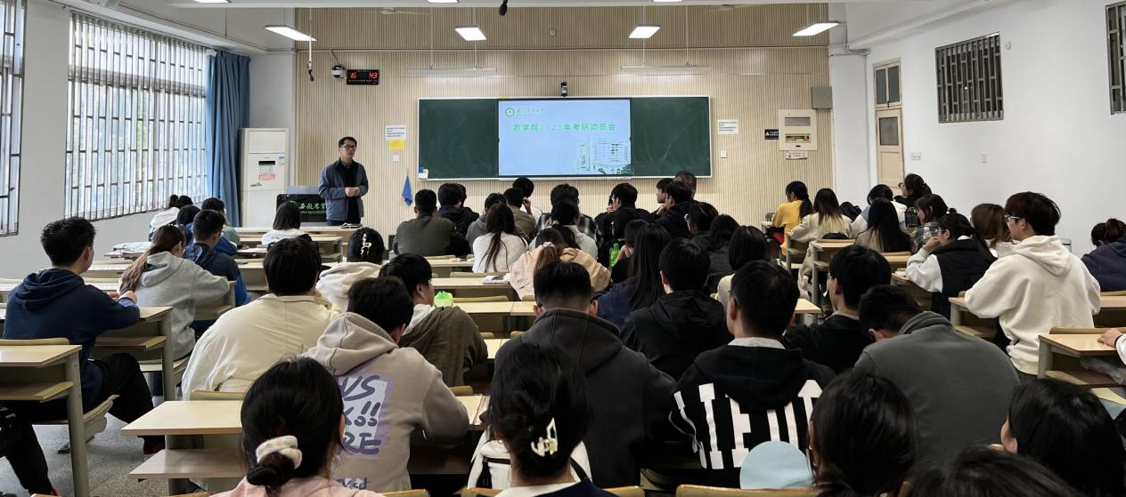本网讯 10月8日,农学院在博学楼319举行了考研动员会,农学院党委副书记冯峰、副院长宋贺、研究生工作秘书陶帅、2021级本科生辅导员周毅及全体2025届本科生参加了动员会,会议由冯峰主持。