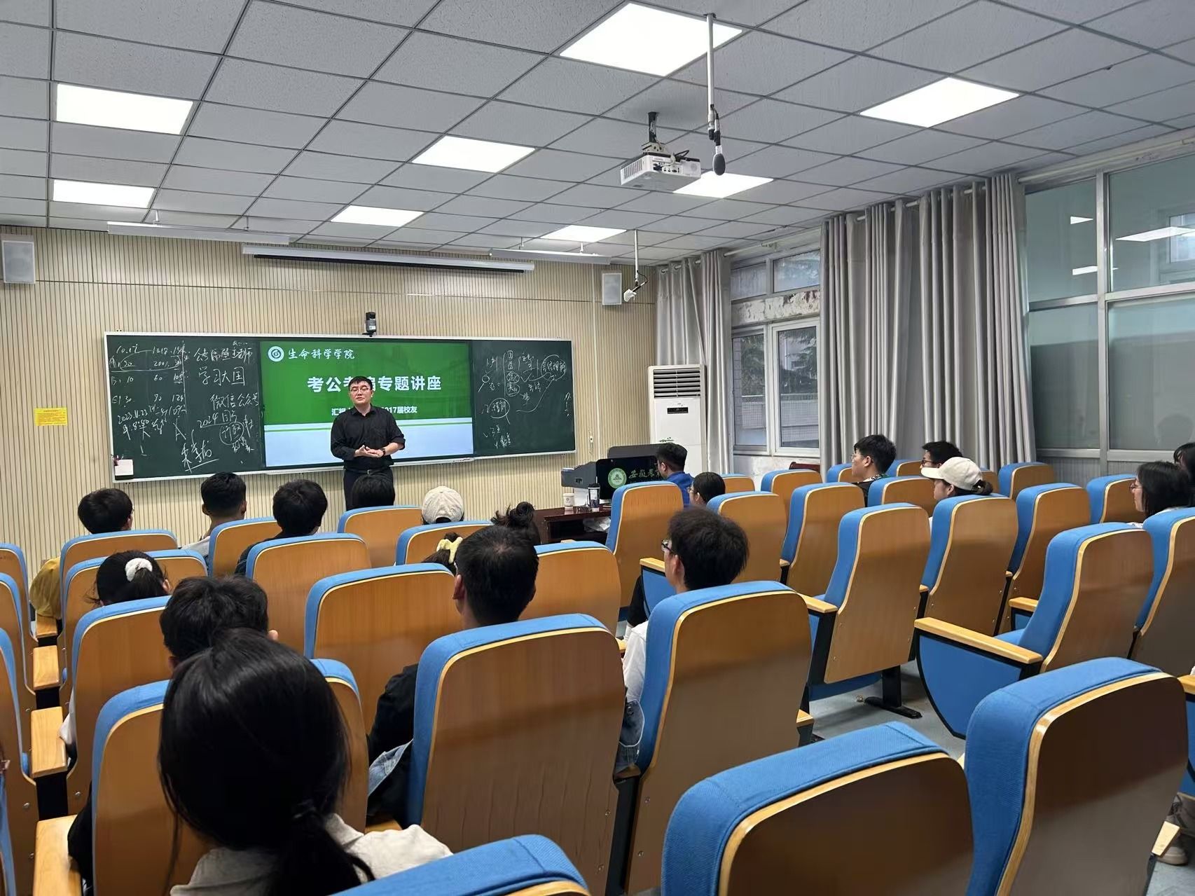 本网讯 2025年国家公考报名公告已于10月14日正式公布,为帮助学生更好地把握备考方向,10月17日下午,生命科学学院在十教216会议室面向毕业年级研究生、本科生举办了公考指导专题讲座,本次讲座邀请了2017届应用生物科学专业校友、公考授课资深讲师朱学龙为同学们分享公职类就业备考经验。