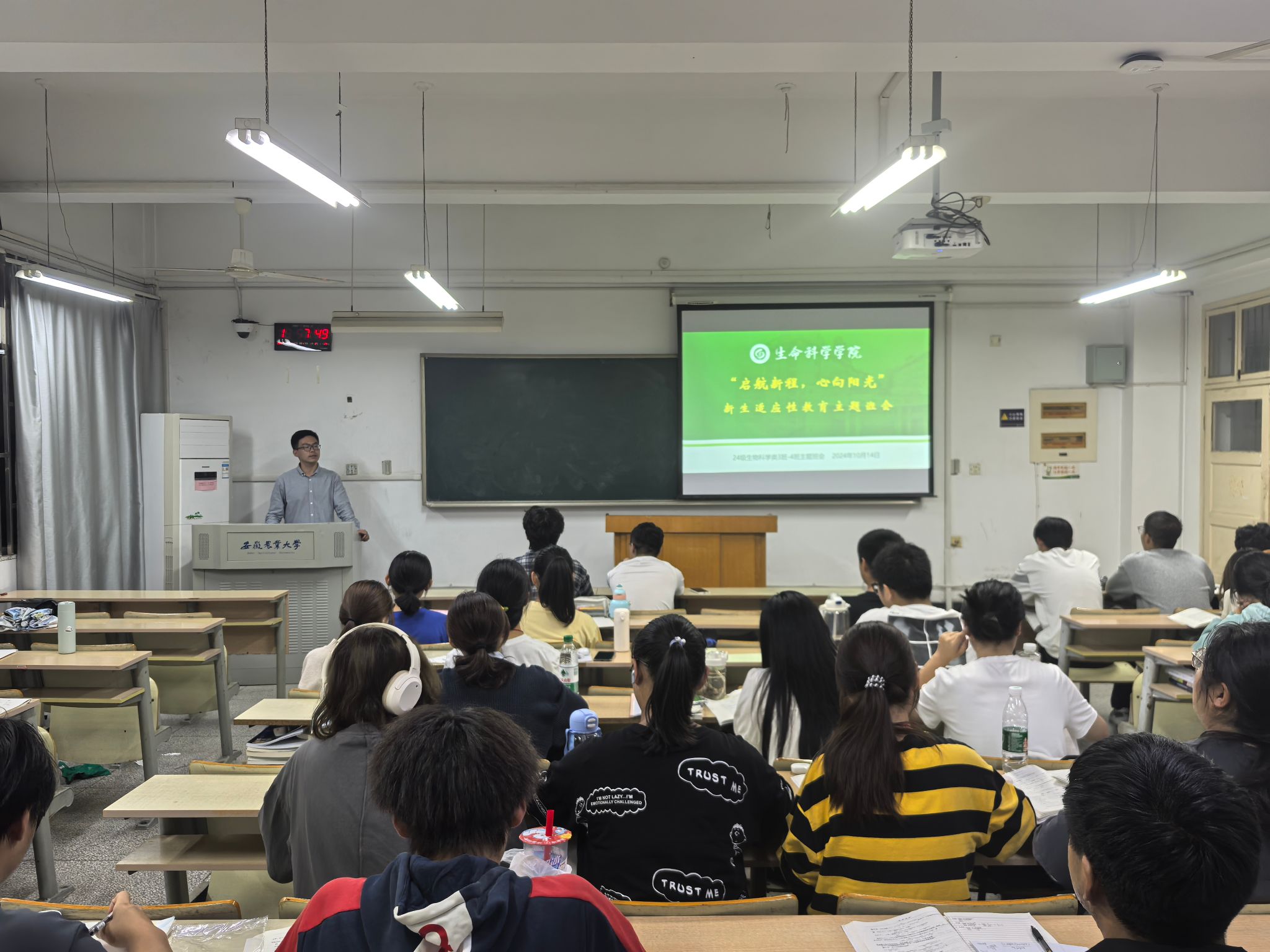 用好学校公共资源为新生心理健康护航。认真组织全院2024级本科生、研究生和新生辅导员通过线上方式,观看了中国科技大学心理健康教育与咨询中心主任沈克祥,受学校邀请所作的主题为《大学新生的心理健康与适应成长之旅》的专题报告。