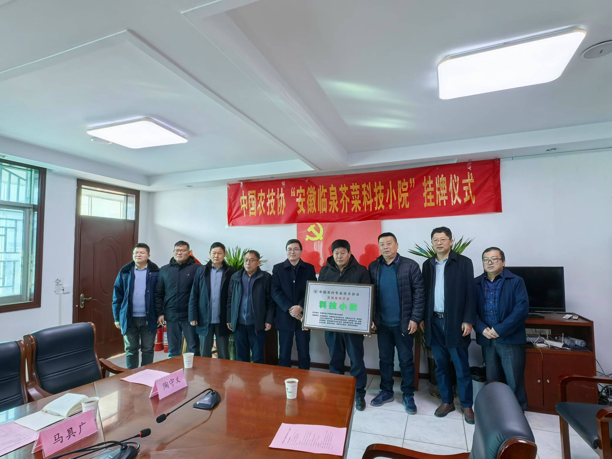 12月18日上午,中国农技协“安徽临泉芥菜科技小院”授牌仪式在阜阳市临泉县滑集镇政府会议室举行。植物保护学院副院长唐庆峰、科技小院首席专家檀根甲教授、科技小院负责人李淼教授等师生6人出席“临泉芥菜科技小院”授牌仪式,阜阳市供销合作社联合社党组副书记、监事会主任李永亮,临泉县供销社主任党组书记、理事会主任王世超,县现代农业技术合作推广服务中心、县农技中心、滑集镇农技站、临泉县农品汇供销合作社等相关负责人参加了授牌仪式。授牌仪式由滑集镇党委副书记马具广主持。