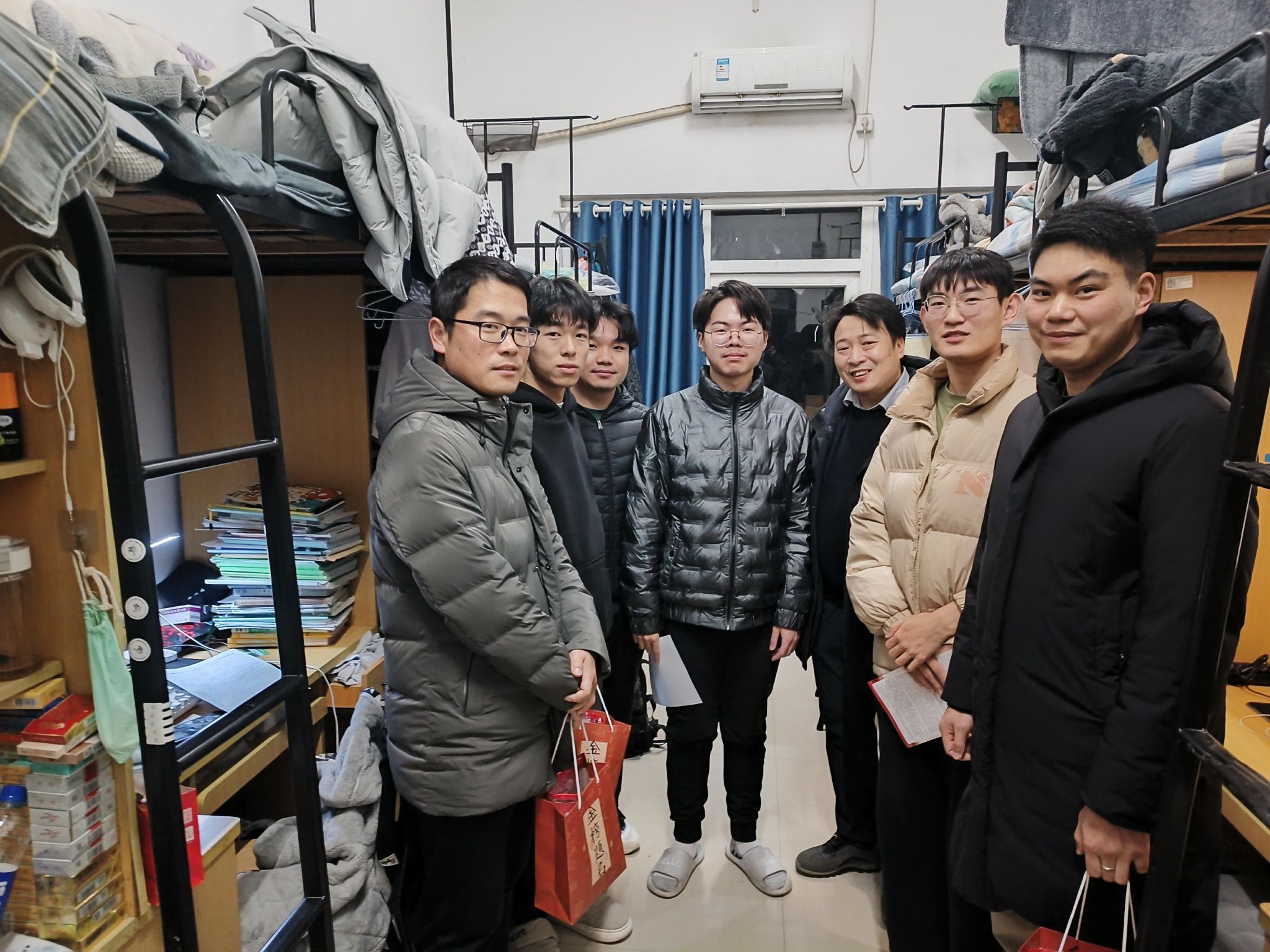 学院领导、研究生班主任深入了解研究生的生活状况,询问他们的学习和科研情况,并传达了学院的关切关怀。在走访交流中,特别提醒研究生做好防诈骗、用电、交通、财产、实验室安全防范,注意健康防护,合理增添衣物,保持积极乐观的学习及科研工作状态。