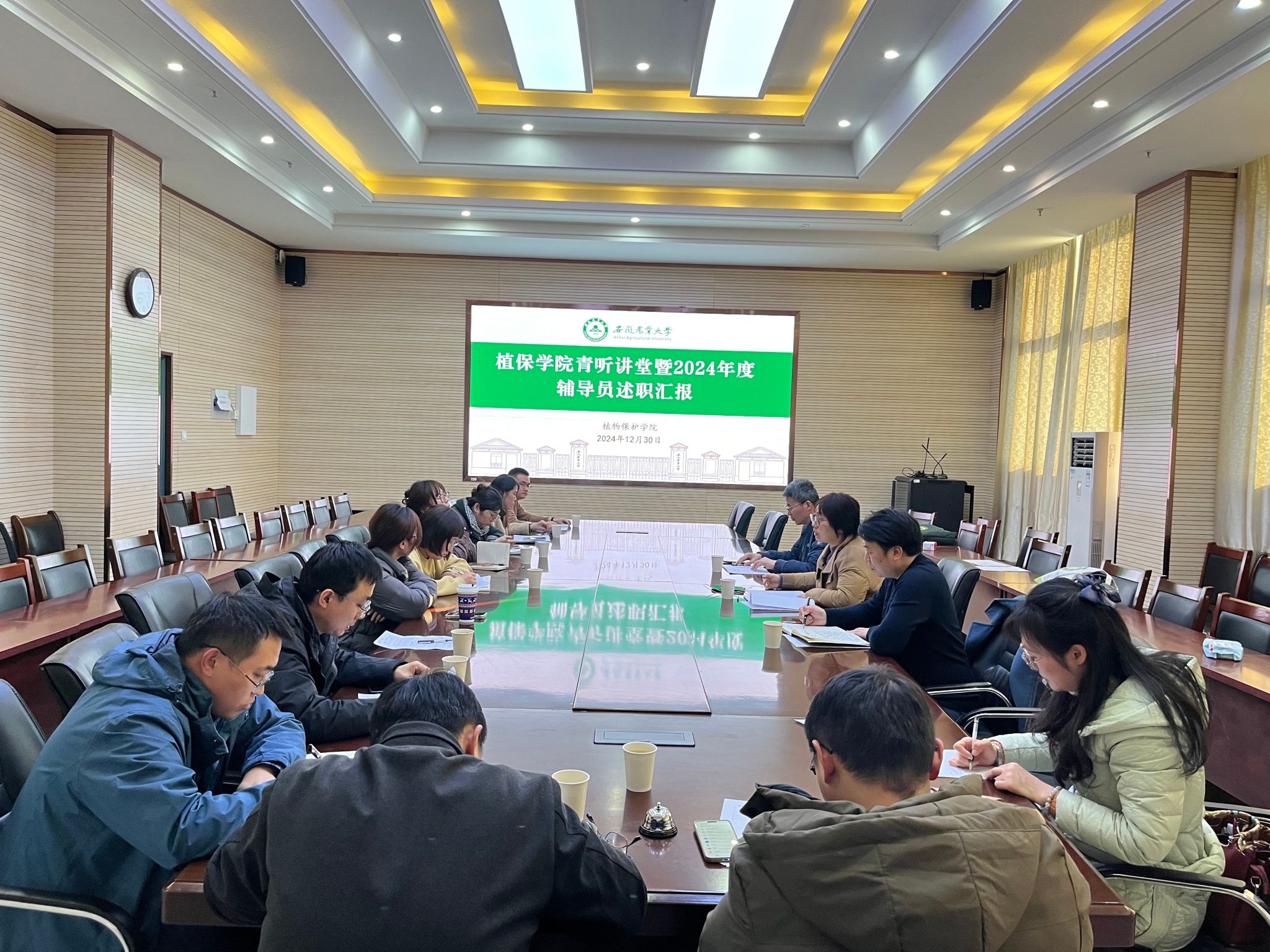 本网讯 12月30日,植物保护学院在中西部综合楼1213会议室开展青听讲堂暨2024年度辅导员工作述职汇报。学院领导班子、全体本科生和研究生辅导员参加会议。会议由学院党委副书记汪小强主持。
