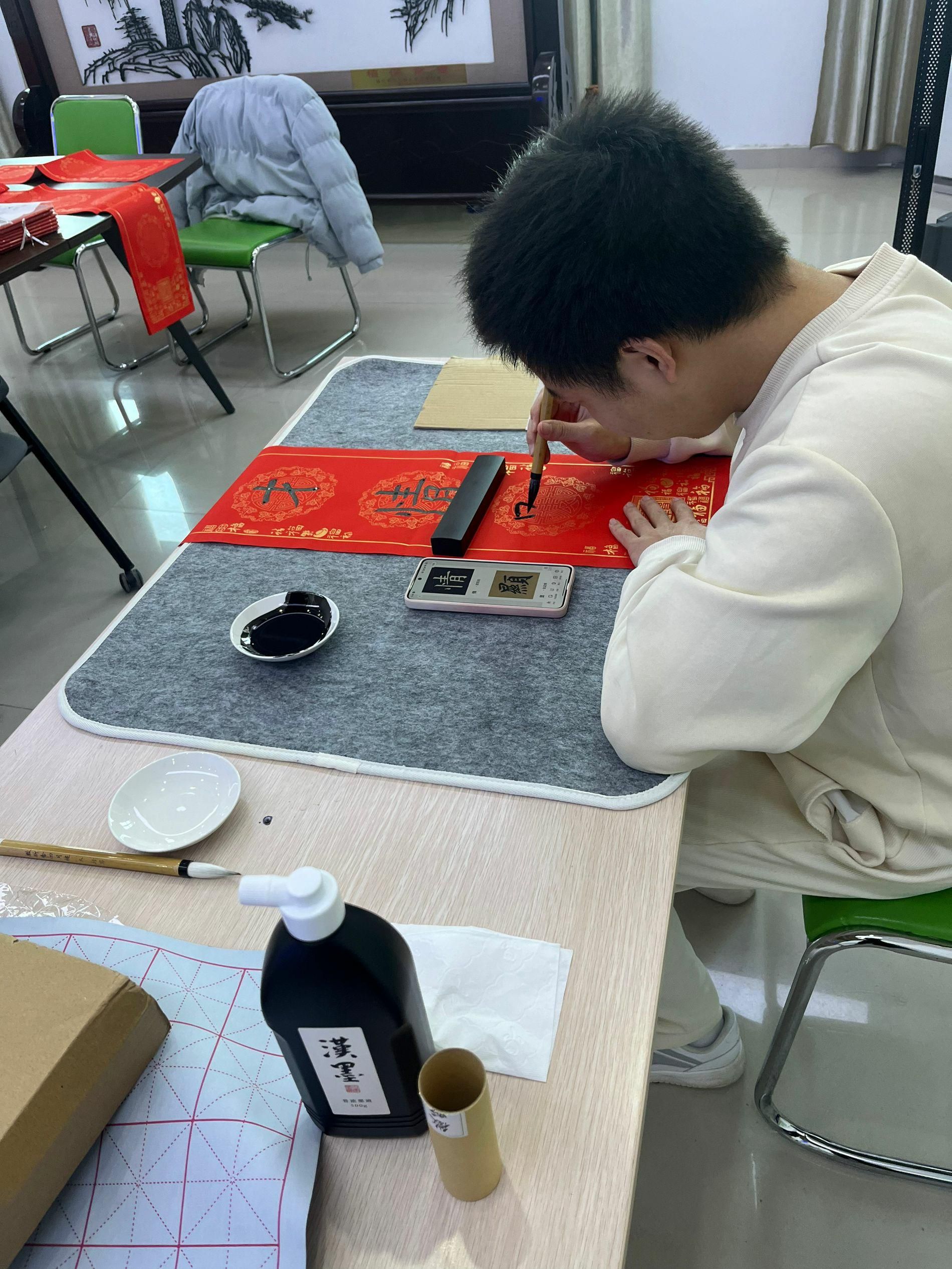 本网讯 为弘扬中华优秀传统文化,营造文明祥和的节日氛围,1月12日,植物保护学院研究生分会于中西部楼1221室举办了“同心筑梦贺新春 墨香四溢送福联”活动。