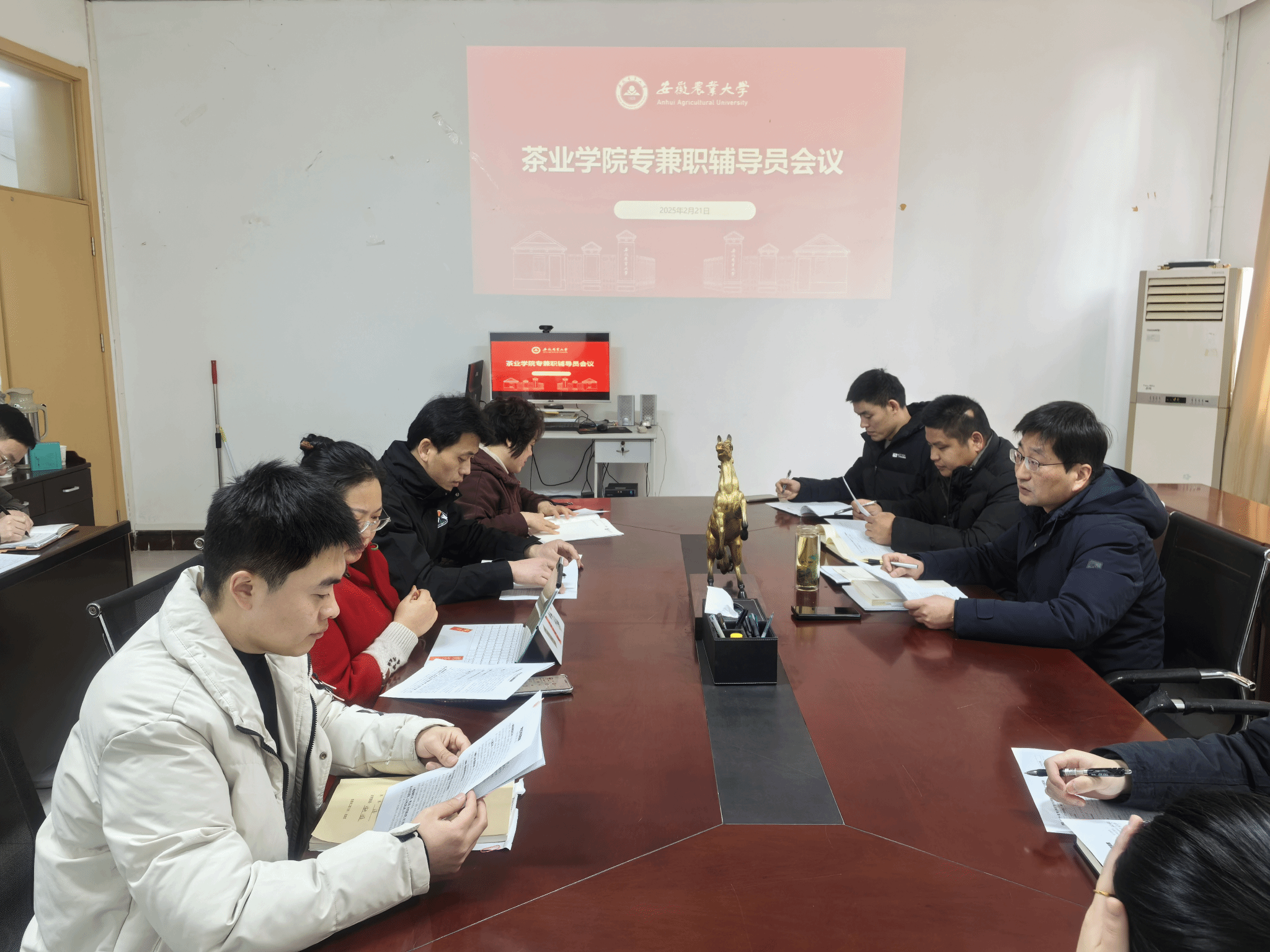 2月21日上午,茶业学院召开2025年春季学期专兼职辅导员工作会议,全面部署新学期学生工作。学院党委副书记沈周高主持会议并作重点部署,强调以“学生为本、安全为先、育人为要”为主线,推动各项工作落地见效。