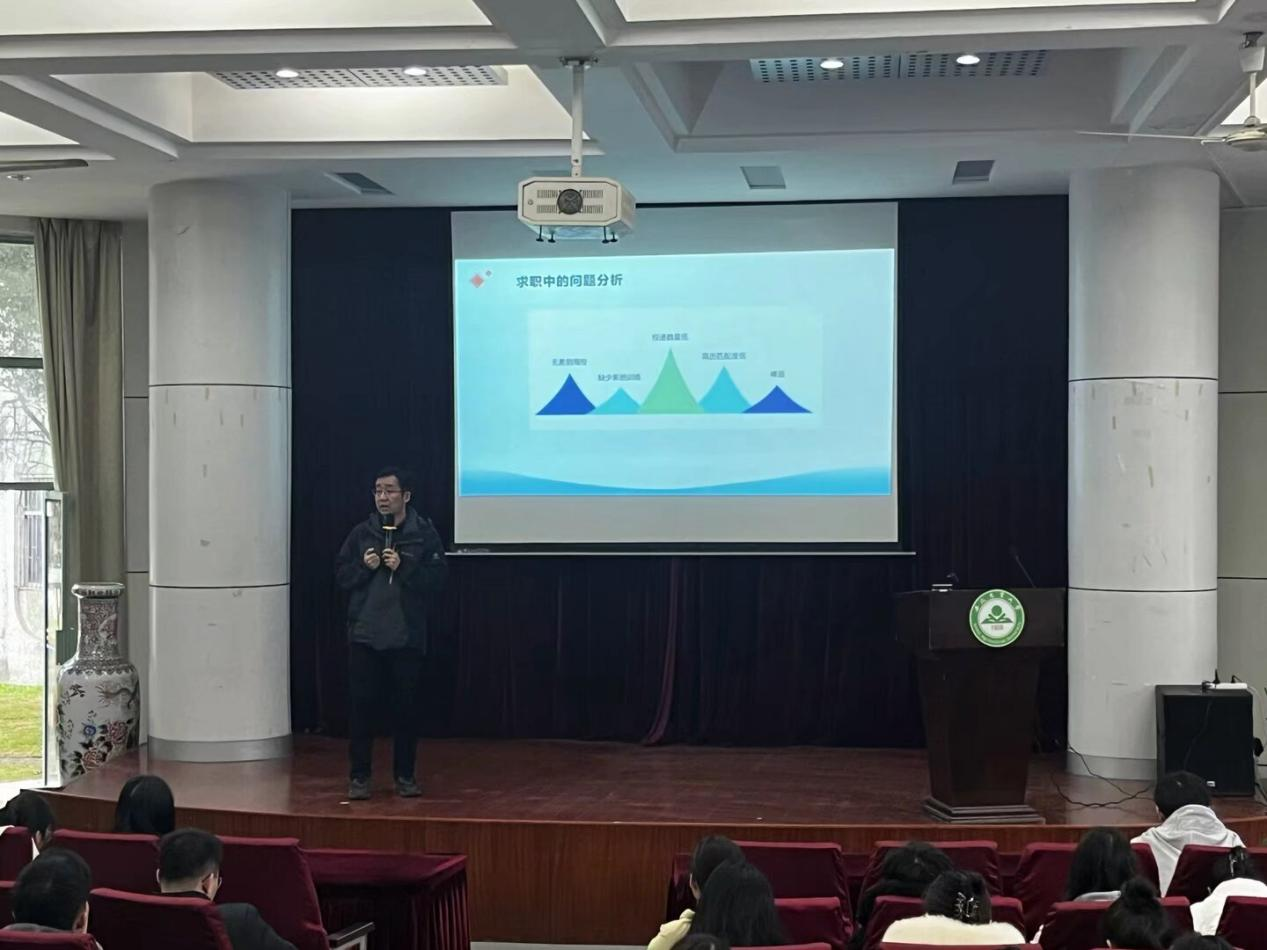 陈枫结合学院往届毕业生就业去向,系统讲解了春招特点、就业信息获取渠道、简历制作和面试技巧、求职风险防范知识及毕业生就业流程。他希望毕业生要树立积极的求职心态、做好充足的就业准备,充分利用学校及学院资源,积极主动参加求职招聘活动。