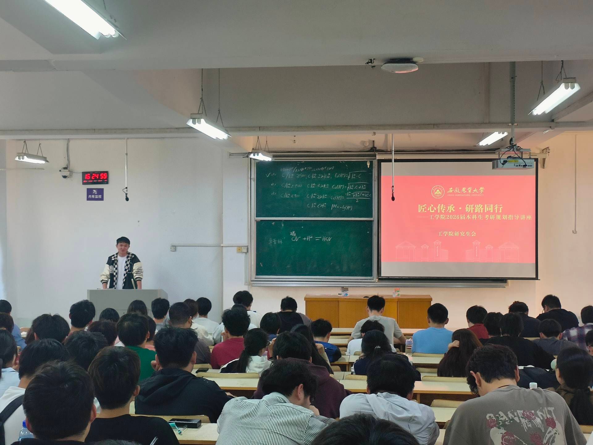 本网讯 为帮助2026届本科生更好了解考研院校、规划备考策略,充分发挥研究生“传帮带”作用,3月26日,由工学院研究生会主办的“匠心传承·研路同行——2026届本科生考研规划指导讲座”顺利举办。本次讲座由学院两名研究生担任主讲人,学院部分2026届本科生参加。