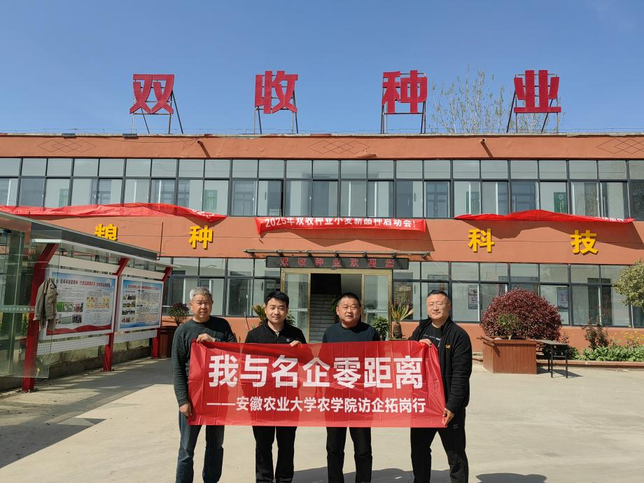 3月至4月,农学院就业领导小组成员带队赴安徽国豪长丰研发中心、淮南农场、安徽益广生态农业发展有限公司、淮北双收种业有限责任公司、安徽筑梦种业有限公司、安徽柳丰种业科技有限公司、安徽隆平高科小麦研究院等7家校友企业开展访企拓岗活动。