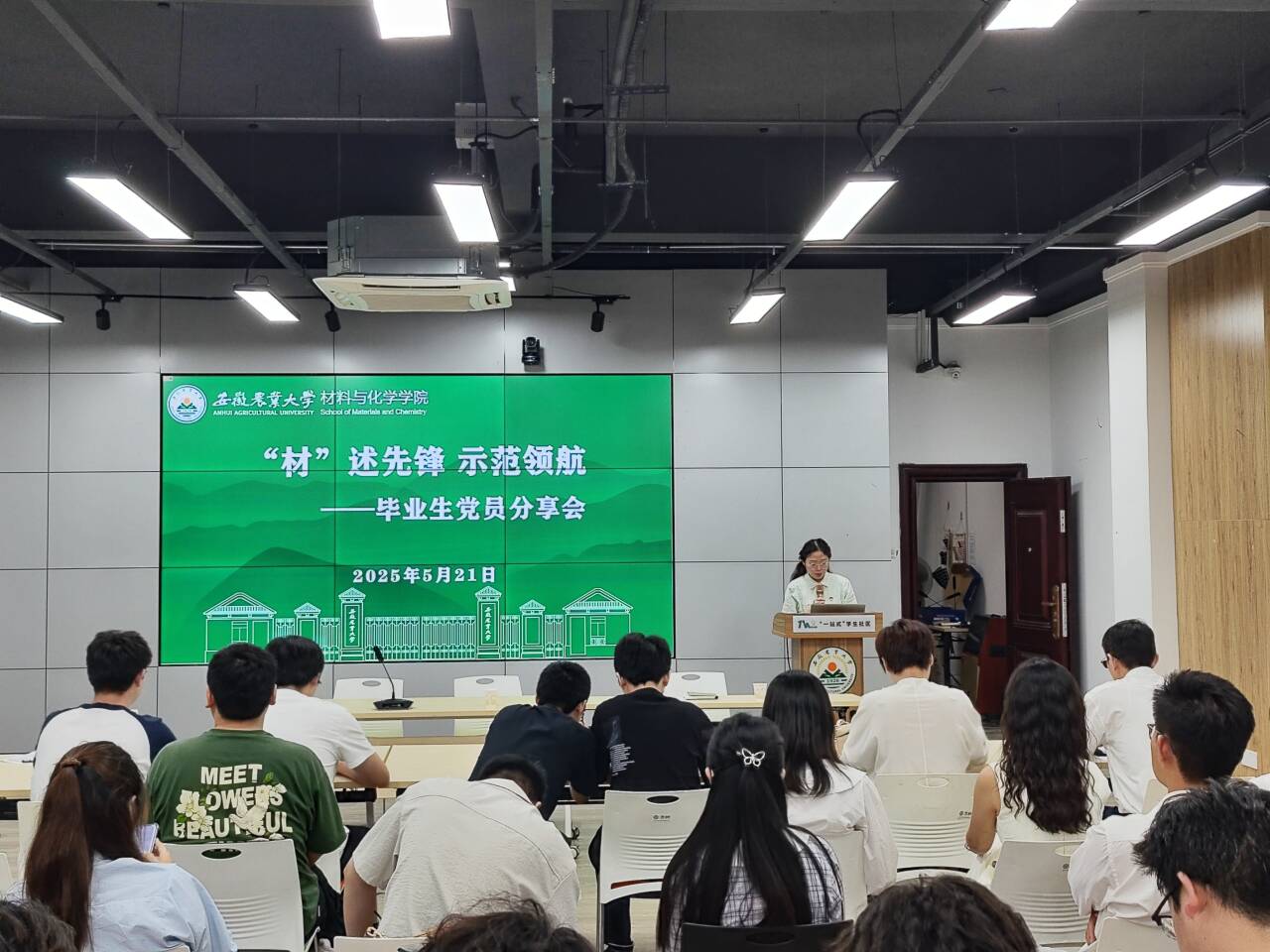 本网讯 5月21日下午,材料与化学学院在“一站式”学生社区(南区)开展“材”聚初心,“化”育先锋——毕业生党员离校教育系列活动。学院党委书记夏成云、副书记周晓娟、党支部书记及全体毕业生党员参与,活动由周晓娟主持。