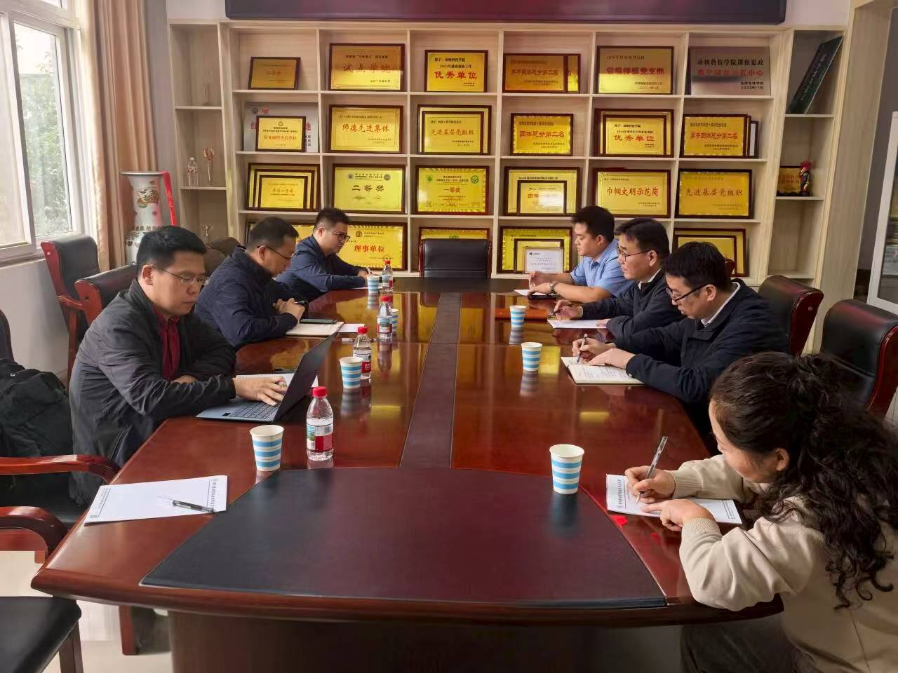 本网讯 为积极拓展优质生源渠道,加强校际交流与合作,10月12日上午,学院副院长曹祖兵、学校肉牛产业研究院副院长刘洪瑜、水产系主任张云龙等一行,赴信阳农林学院开展2026年研究生招生宣传活动。信阳农林学院动物科技学院院长邓凯伟、副院长何书海以及教师代表参加了宣讲会及座谈交流。