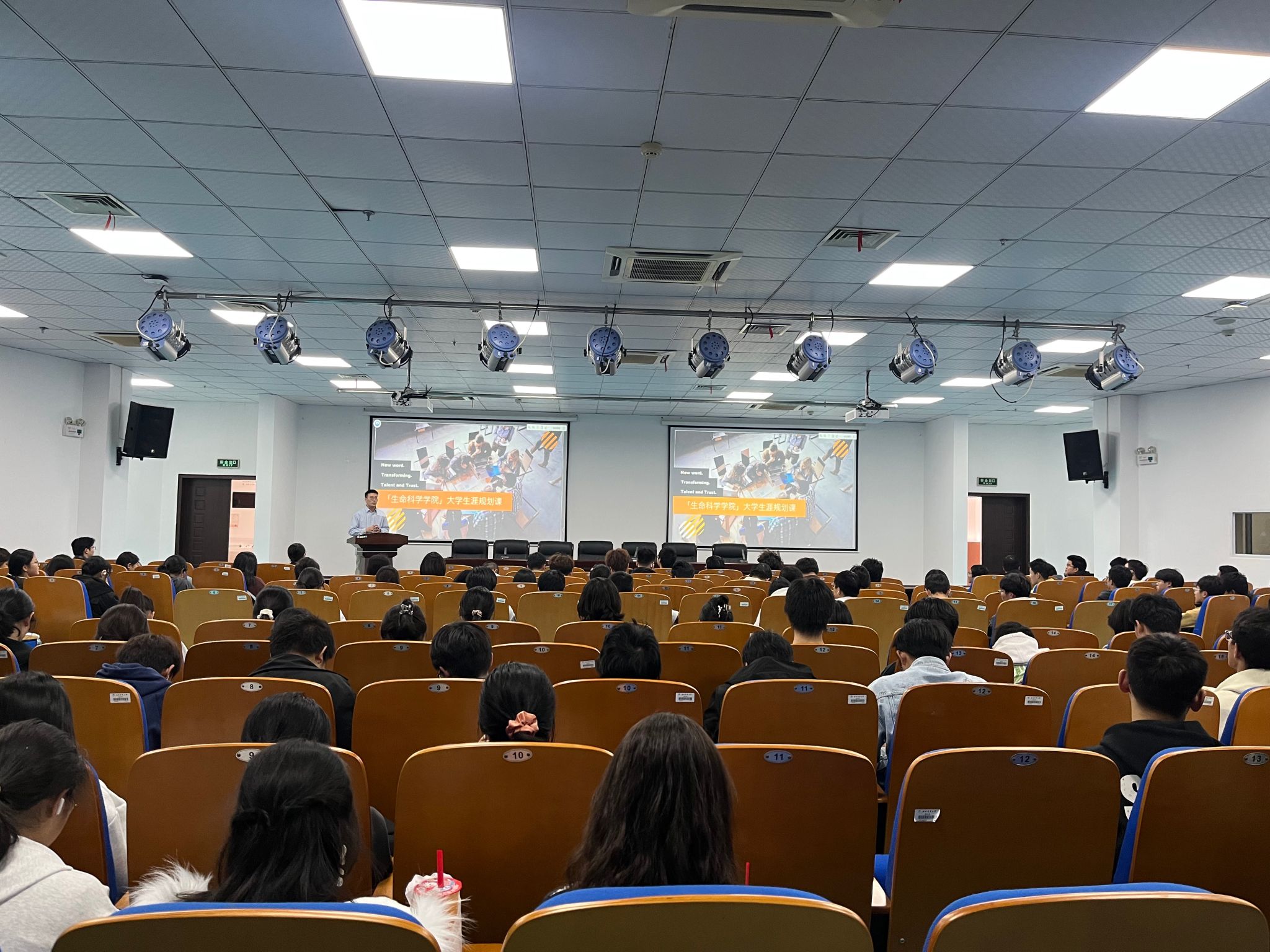 本网讯 11月4日晚,生命科学学院在生物科技楼B438报告厅举办职业生涯规划与就业指导专题讲座。本次讲座特邀高顿教育集团合伙人、合肥分公司负责人王鹏飞老师担任主讲,学院各年级本科生、研究生150余人参加。