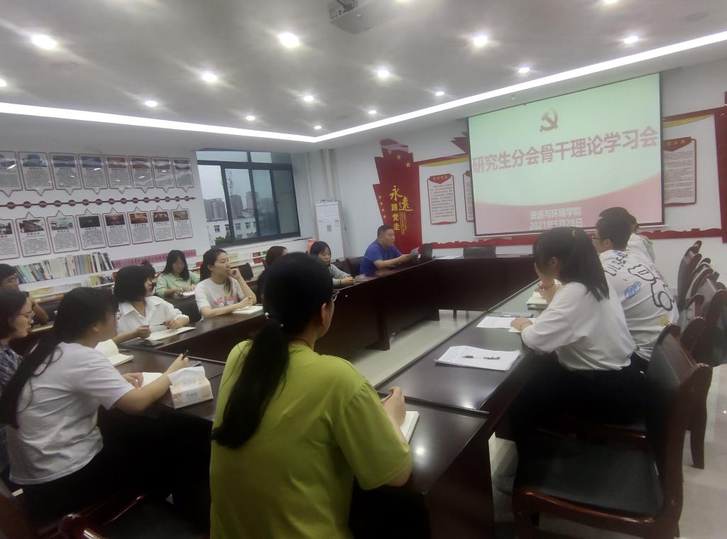 本网讯 为深入学习贯彻落实习近平总书记在党史学习教育动员大会上的重要讲话精神,引导研究生“学党史 强信念 跟党走”,5月28日,资源与环境学院举行研究生分会骨干理论学习会。会议由岳鹏老师主持,研究生分会全体成员参加。