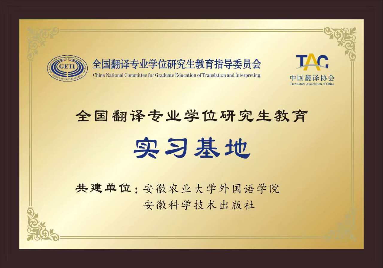 本网讯 12月31日,中国翻译协会公布了全国翻译专业学位研究生教育实习基地新增名单,其中外国语学院与安徽科学技术出版社合作共建的实习基地经认证委员会评审,顺利通过认证。