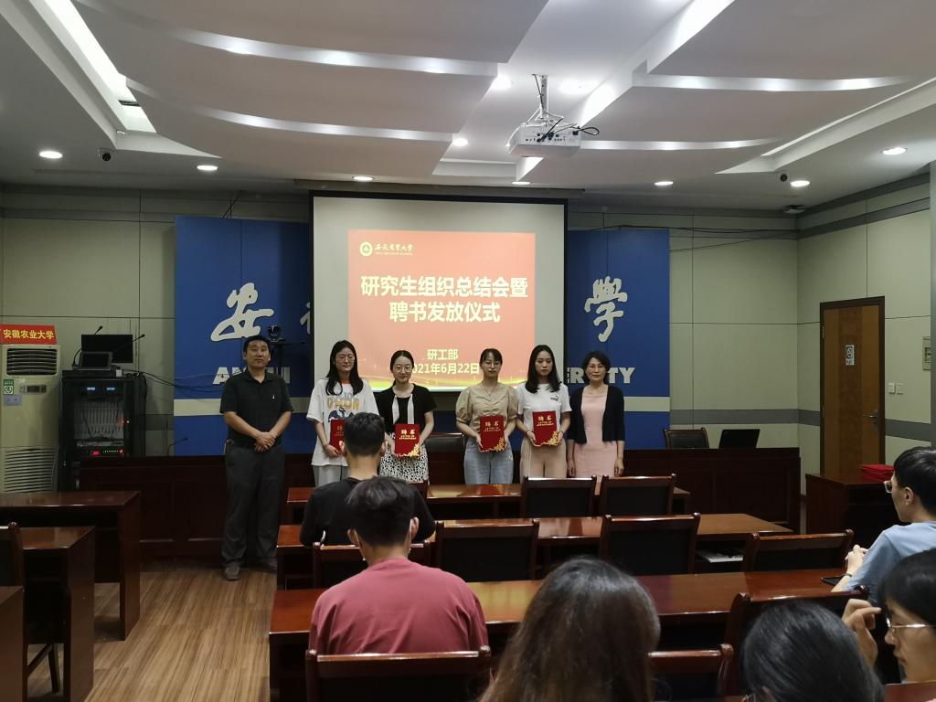 姜家生对两家研究生学生组织本学期的工作给予了充分肯定,对大家在疫情防控常态化下研究生日常管理、研究生党史学习教育开展、“研途安农”新媒体平台运行管理等方面的付出表示感谢,并对即将毕业的同学们送上衷心的祝福。姜家生指出,此次总结会暨聘书颁发仪式,对于各位研究生干部是荣誉也是责任,希望大家不负期望,从党史学习中汲取奋进力量,继续为全校研究生做出更高水平的服务工作。同时,对研究生学生组织后续工作提出四点要求:一是要了解学生诉求,时刻关心同学、帮助同学、保护学生的利益;二是毕业季即将到来,大家要对不文明行为、存在安全隐患行为等做到及时规劝、合理引导,配合学校做好毕业生的安全文明离校工作;三是要加大对研究生创新创业工作的宣传引导,激发广大研究生团体在校期间的创新创业热情,更好的推动研究生创新创业工作;四是合理谋划下一阶段工作,有序开展暑期社会实践、博士行、学生干部遴选等工作,努力提升工作效率。(研究生会网宣部 研工部 盛康)