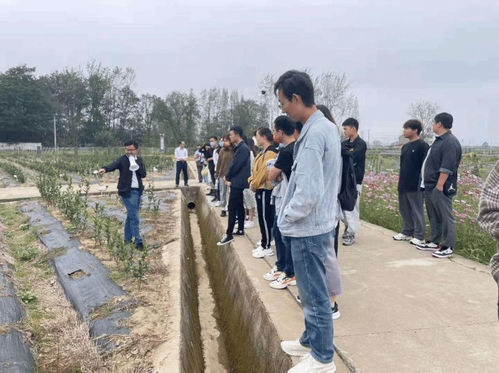 李淼教授详细介绍了皖中综合试验站的建设发展情况、试验功能区的分布情况、科研成果转化以及服务乡村振兴等。试验站江腾老师带领同学们参观了整个园区,在粮食产业联盟示范基地、园艺种质资源圃观摩现场交流时,同学们积极提问,在实践参观的同时加深了对相关理论知识的理解。