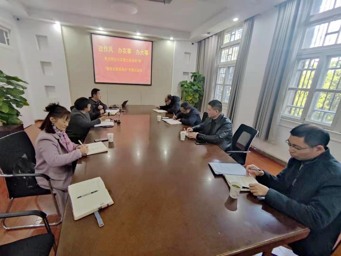 为落实学校“改作风、办实事、办大事”工作部署,深入开展“我为师生办实事”实践活动,3月7日上午,研究生院(研工部)邀请体育部等专家老师召开“研途有‘体’之研究生体质提升”专家论证会,会议由研究生院(研工部)院(部)长蔡永萍主持。