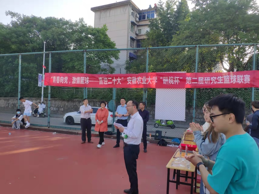 5月5日下午,由研工部主办、校研究生会承办、各研究生培养院研究生分会共同协办的 “青春向党,激情篮球——喜迎二十大”为主题的安徽农业大学“研院杯”第二届研究生篮球联赛决赛和颁奖仪式在第二运动场举行,学工部处长姚莉、校团委书记林煦东、茶与食品科技学院党委副书记夏业鲍、研工部副部长姜家生以及校研究生会相关职能部门成员出席颁奖仪式并为获奖学院颁奖。研工部崔文礼主持颁奖仪式。