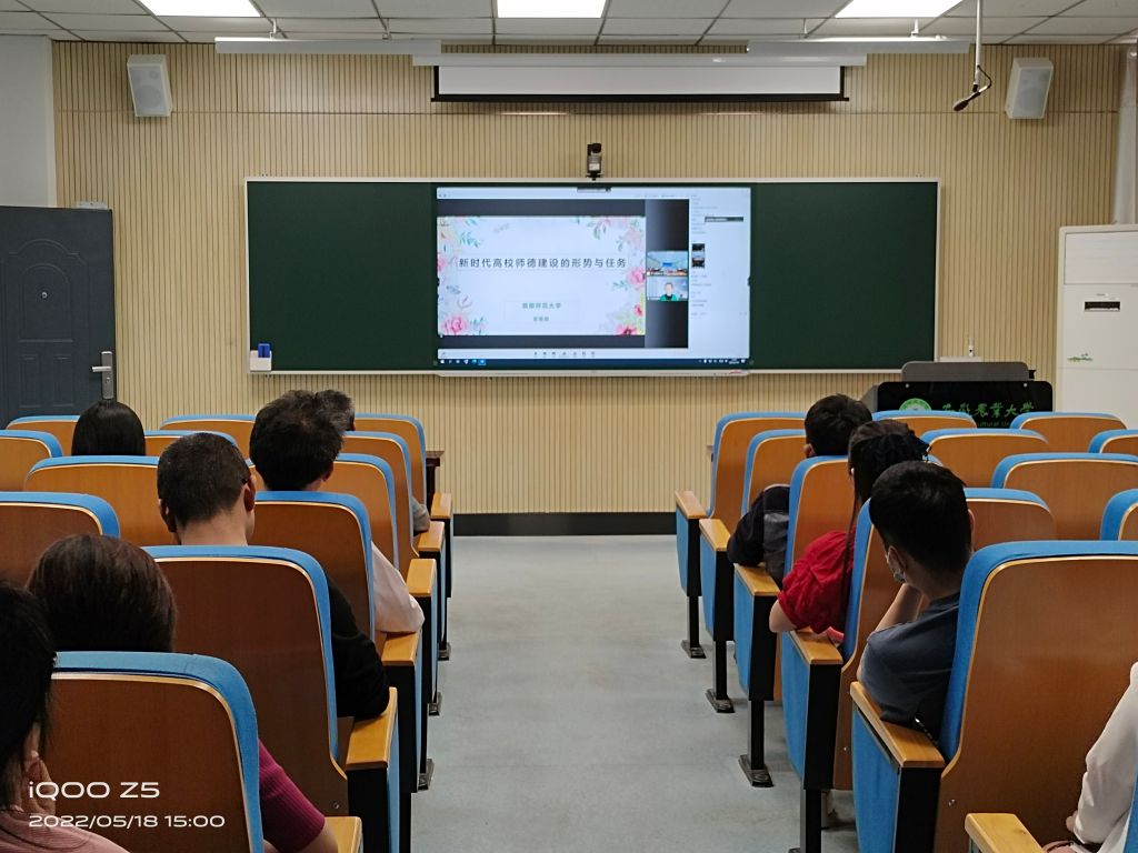 首都师范大学苏寄宛教授和中山大学王金发教授分别作题为《新时代高校师德建设的形式与任务》和《研究生导师使命与担当》主题报告。本次培训通过线上直播和线下集中学习方式同步进行,主会场设在校第二会议室,各学院设立分会场。