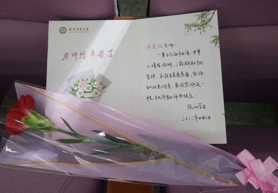 研究生院精心制作了体现安农特色与节日意义的教师节专属贺卡,研究生们纷纷写下对老师的感谢、感恩与祝福,并将祝福卡片、便利贴悬挂在“老师,我想对您说”展板上,部分同学将提前准备好的贺卡、康乃馨、多肉小绿植等送给老师……在属于教师的节日里,校园里处处洋溢着尊师重教的浓郁气氛。