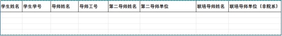 数据表包含8列数据,分别是:学生姓名、学生学号、导师姓名、导师工号、第二导师姓名、第二导师单位、联培导师姓名、联培导师单位