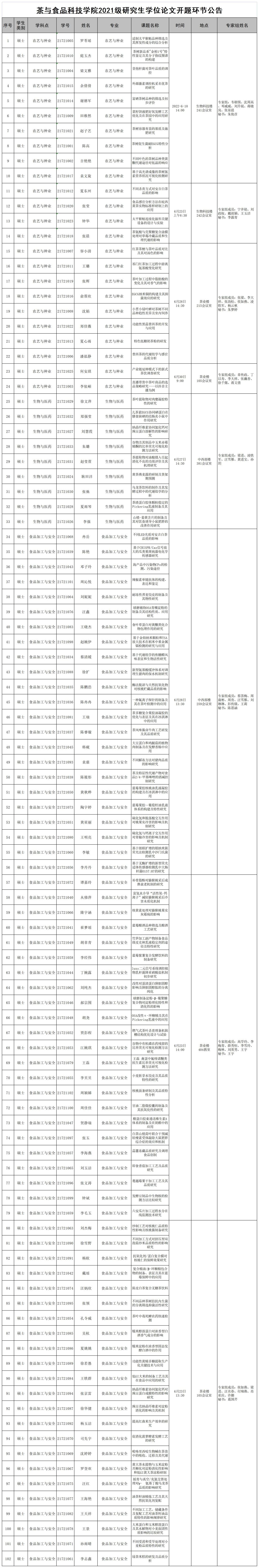 茶与食品科技学院2021级研究生学位论文开题工作安排(学硕)