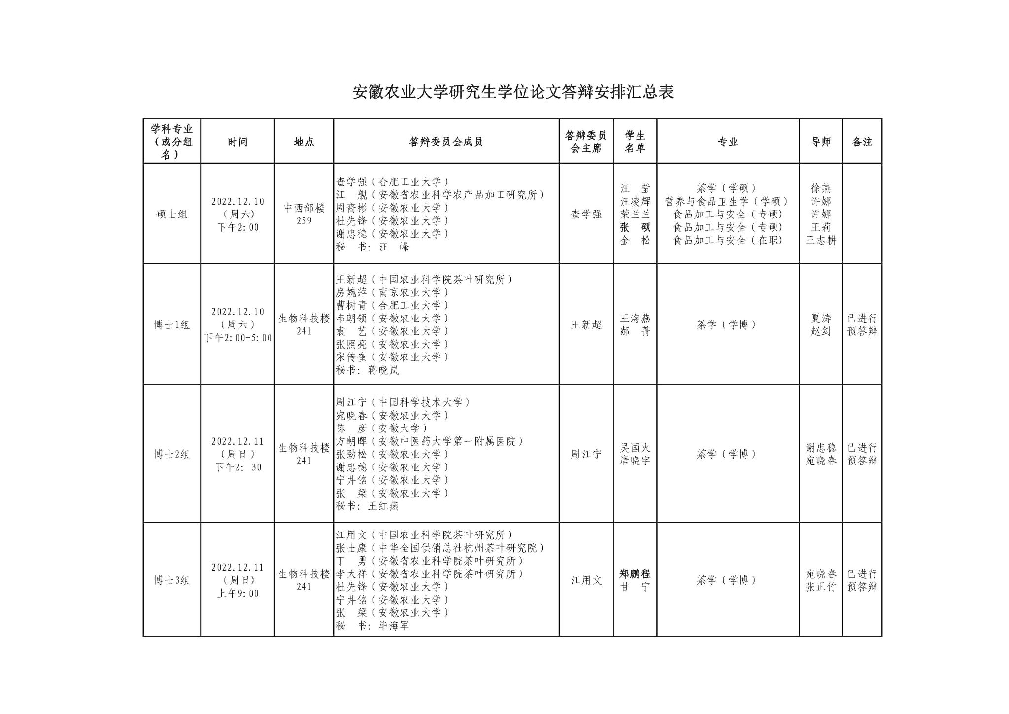 茶与食品科技学院2022年下半年研究生学位论文答辩安排汇总表