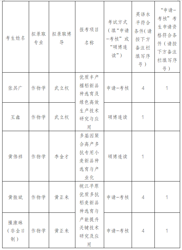 根据《安徽农业大学2025年博士研究生招生公告(教育部安徽高等研究院校企联合人才培养和科研攻关项目)》要求,现公示农学院2025年教育部安徽高等研究院校企联合人才培养和科研攻关项目博士生招生“硕博连读”和“申请-考核”考生拟录取名单如下: